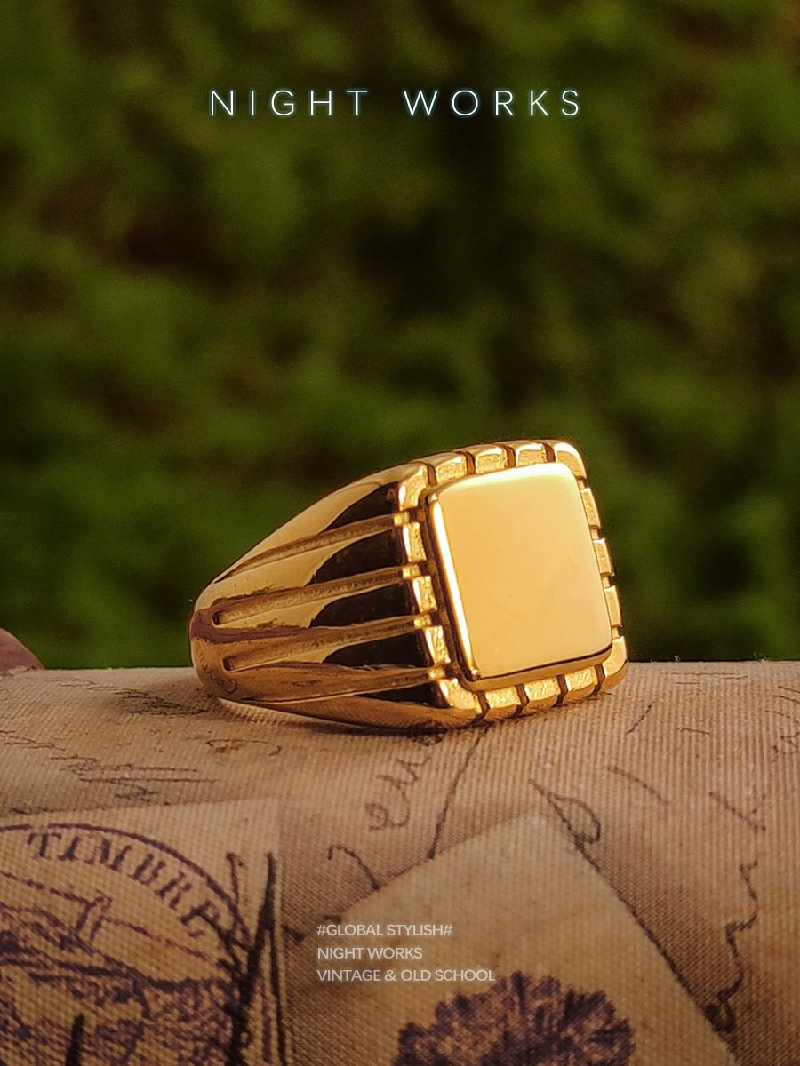 NIGHT WORKS Gold Small Square Ring Large Size e