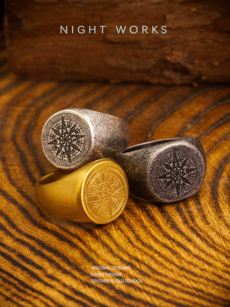 NIGHT WORKS Mid-Century Titanium Steel Men's Ring