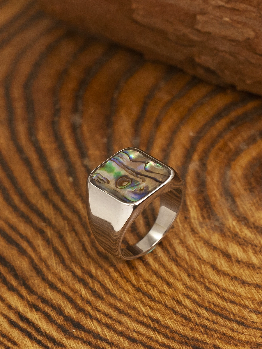 | nameOriginal | NIGHT WORKS retro shell inlaid square ring for men large size index finger middle finger titanium steel non-fading niche niche |