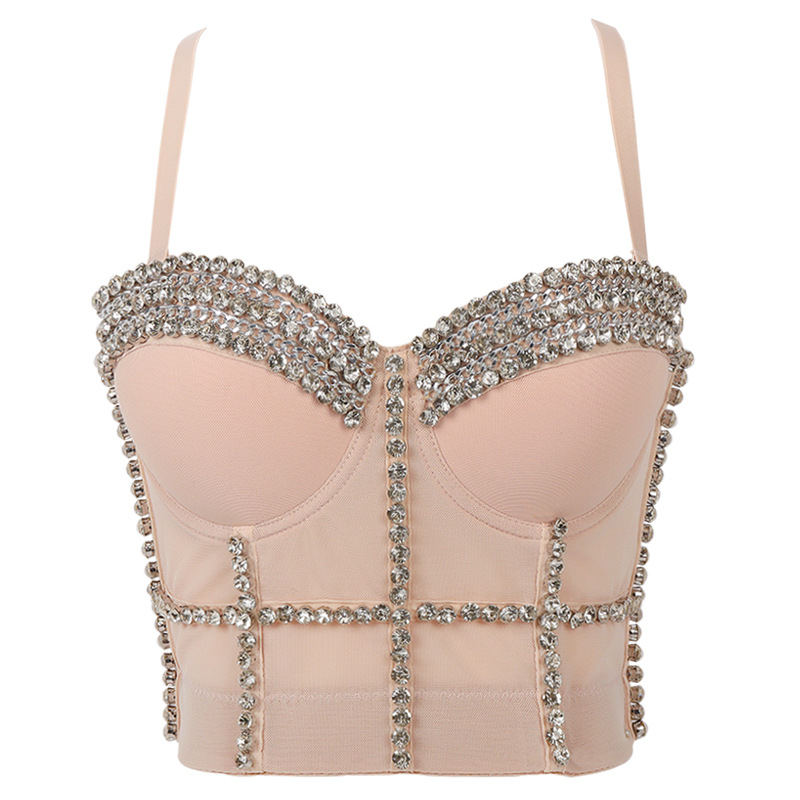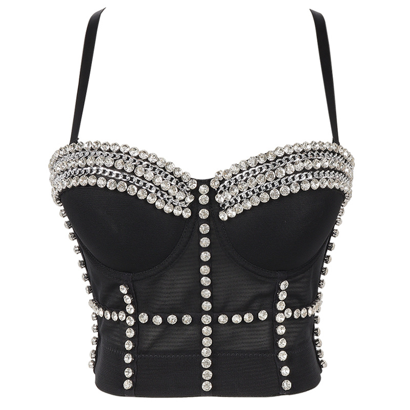 | nameOriginal | Nightclub fairy vest heavy-duty beaded strap rhinestone sequined tube top metal chain slim-fit navel-exposed performance clothing |