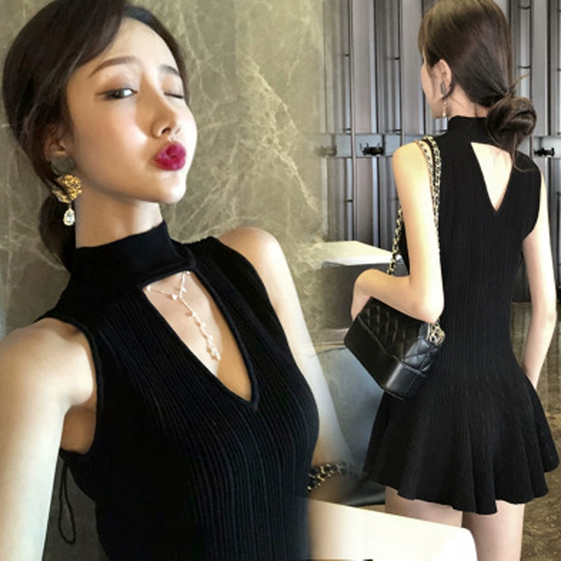 | nameOriginal | Nightclub halterneck V-neck sleeveless vest slim little black dress |