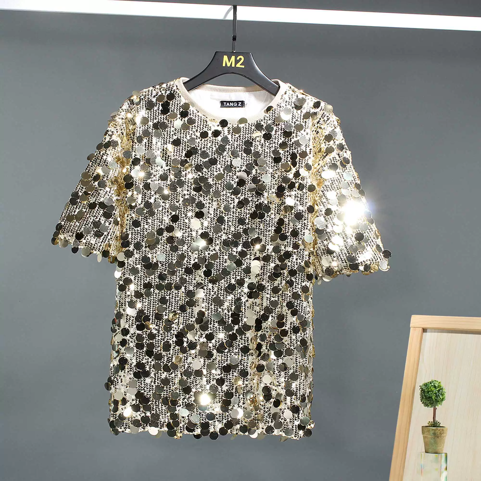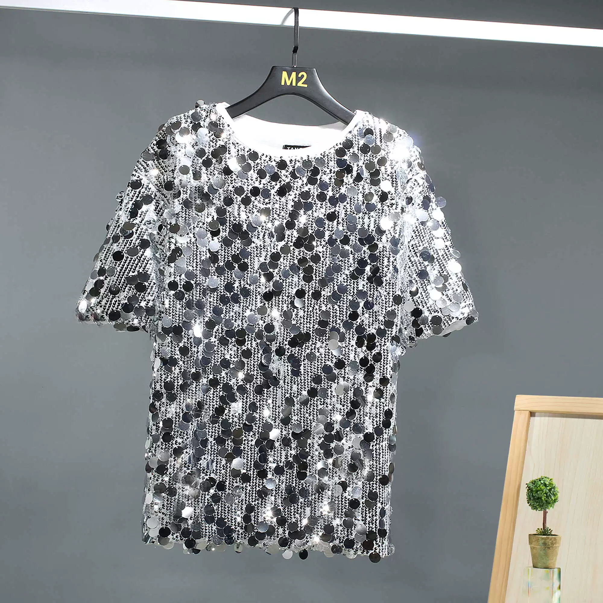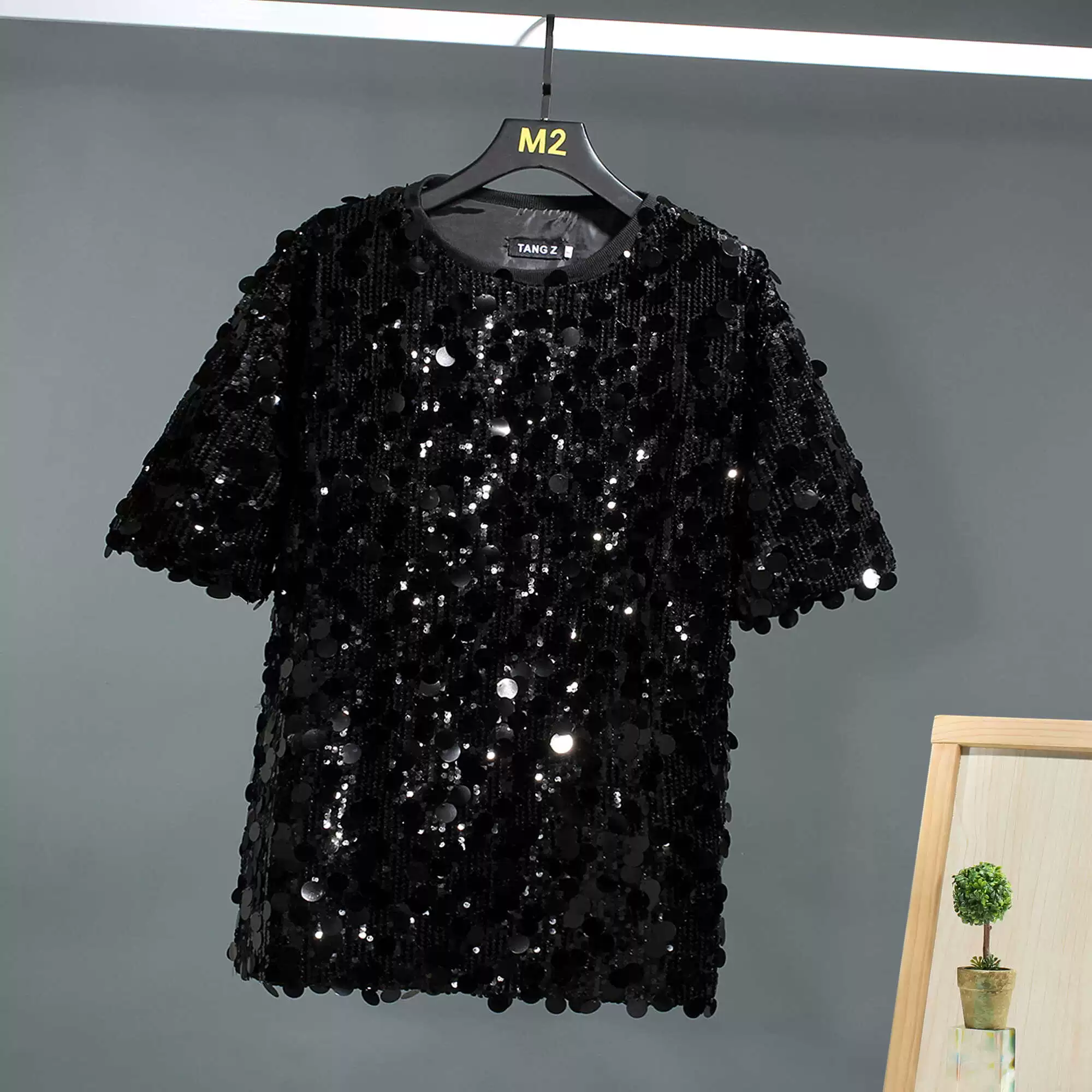 | nameOriginal | Nightclub style light luxury sequined short-sleeved T-shirt for men, loose and fashionable stage performance half-sleeved shirt with design top |