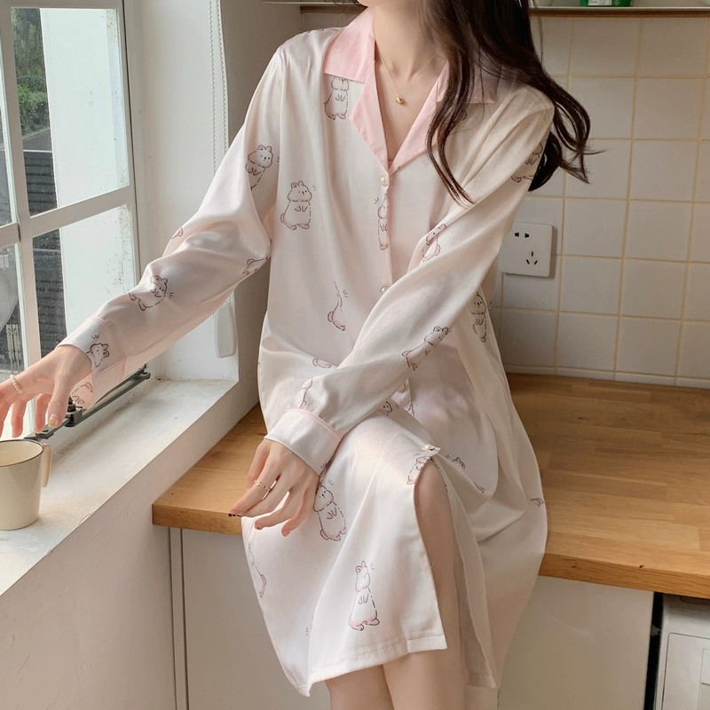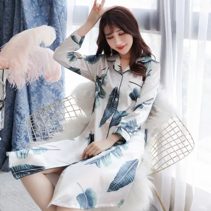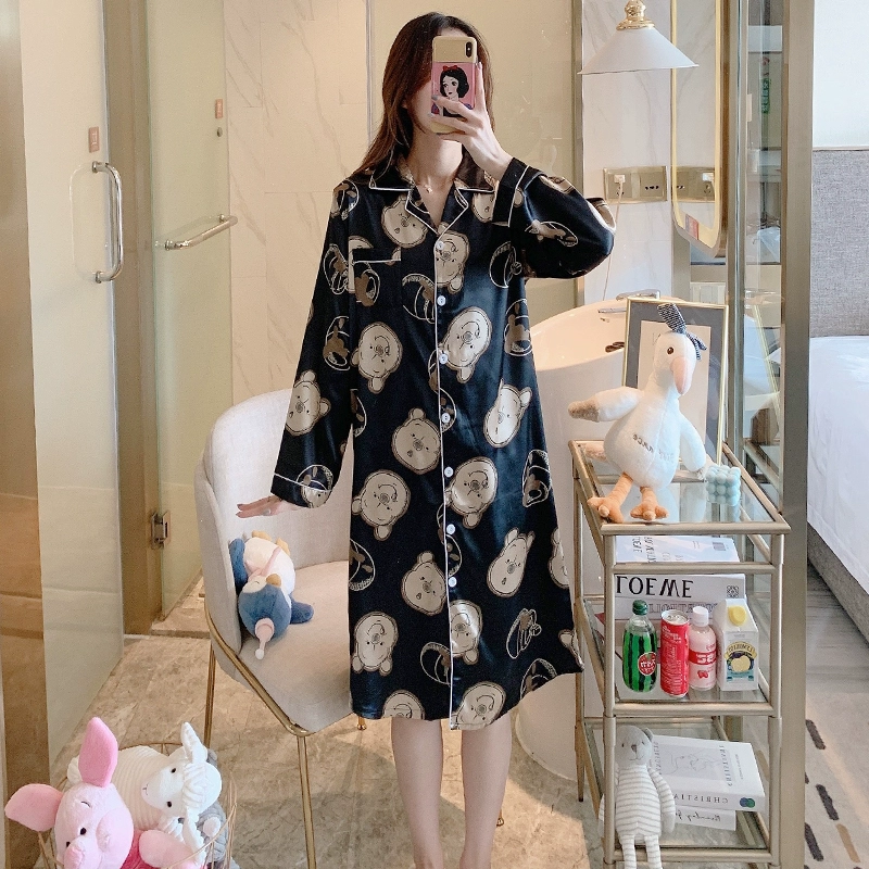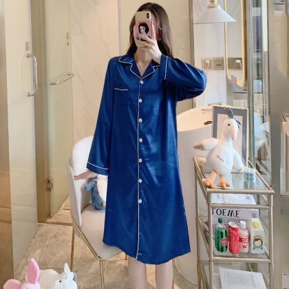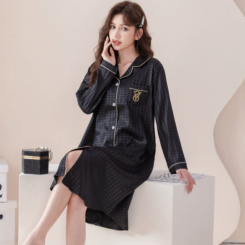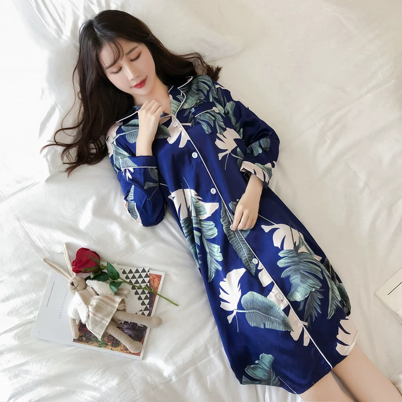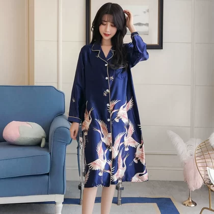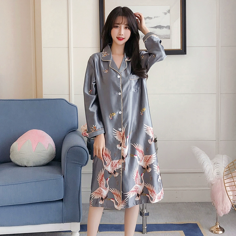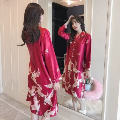 | nameOriginal | Nightgown for women spring and autumn ice silk long sleeves festive big red wedding plus size fat girl 200 pounds real silk long style |