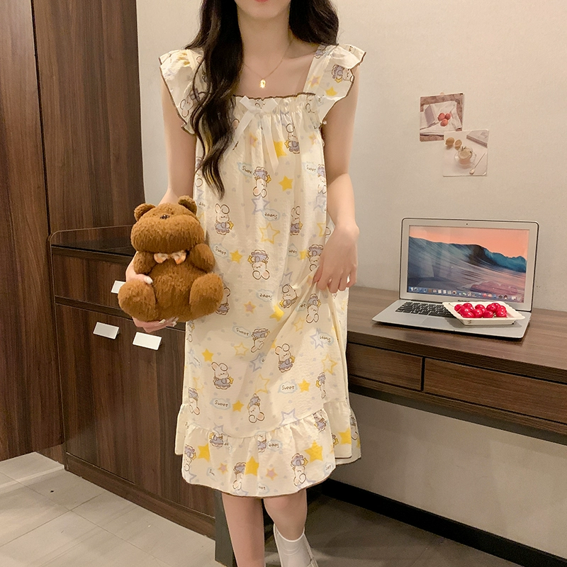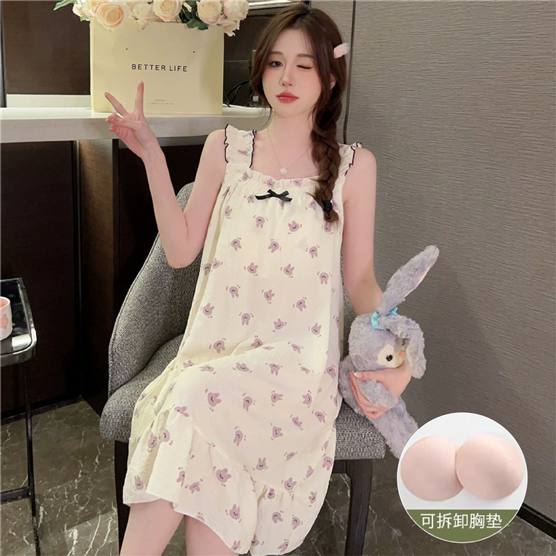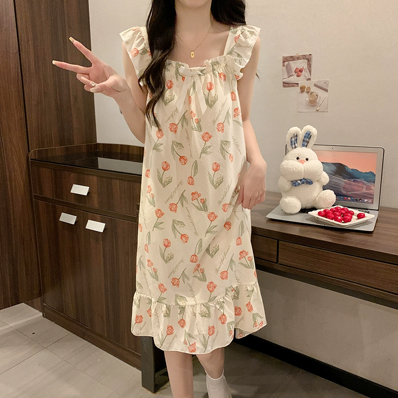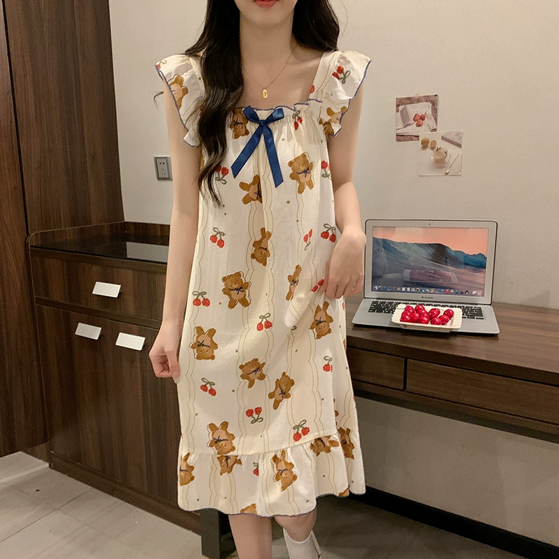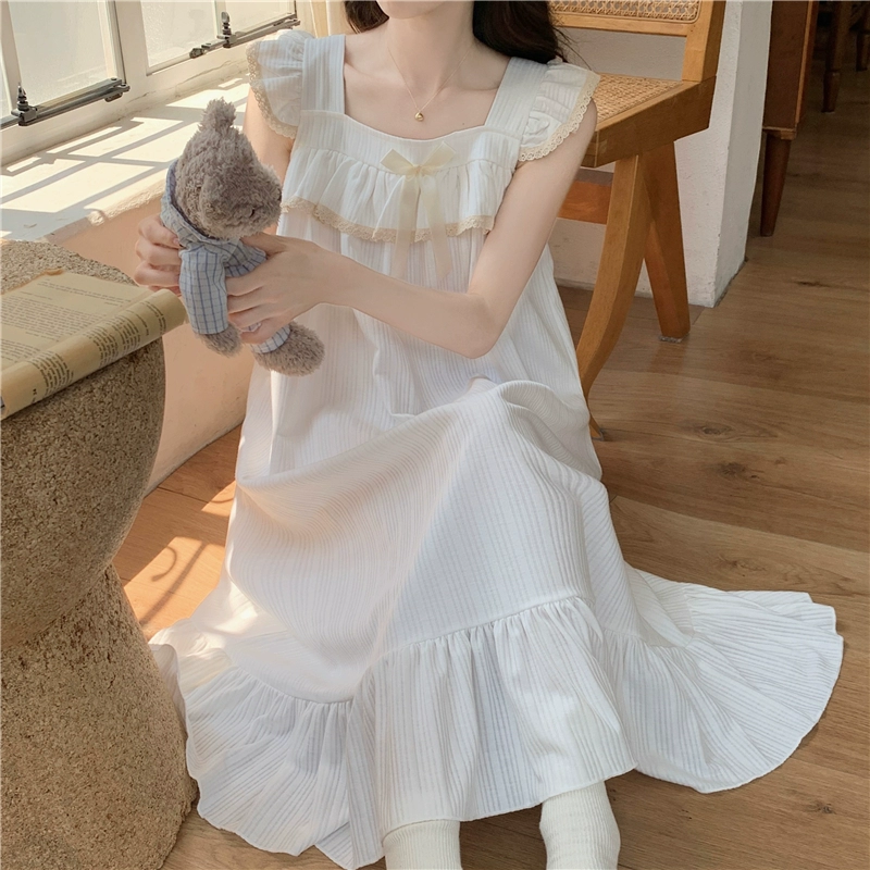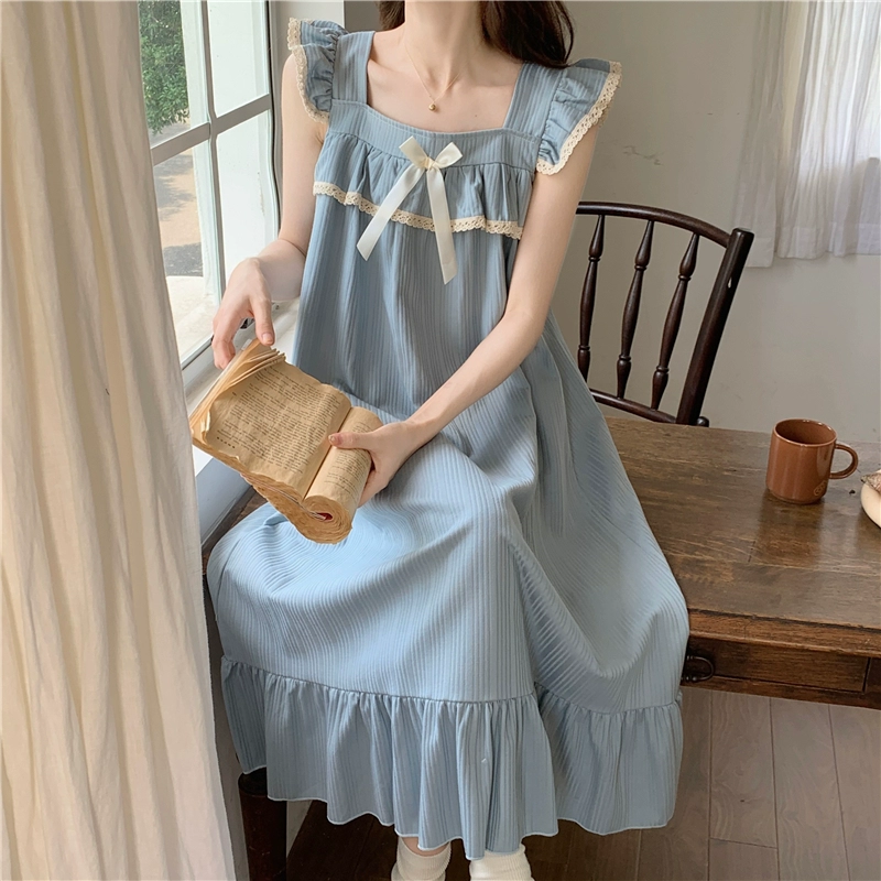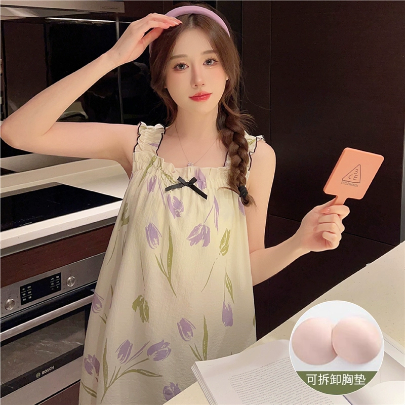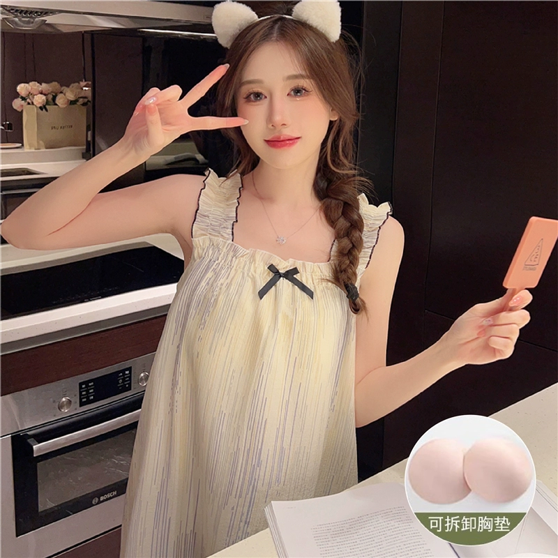 | nameOriginal | Nightgown for women summer day with breast pads and ruffles princess cotton pajamas dress loose suspenders home wear set |