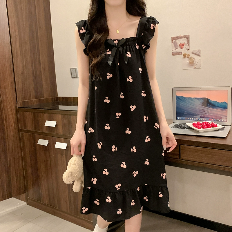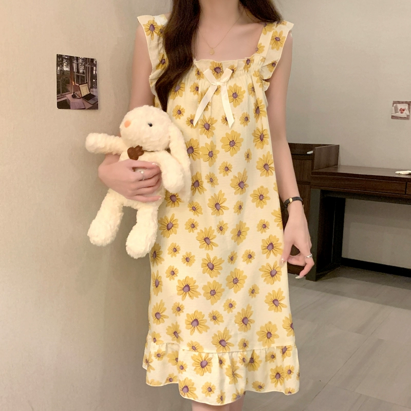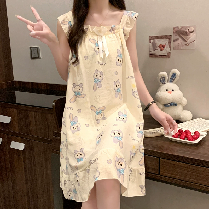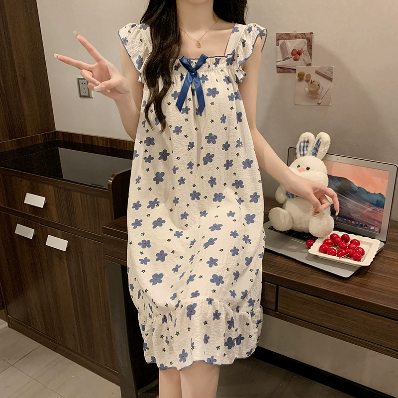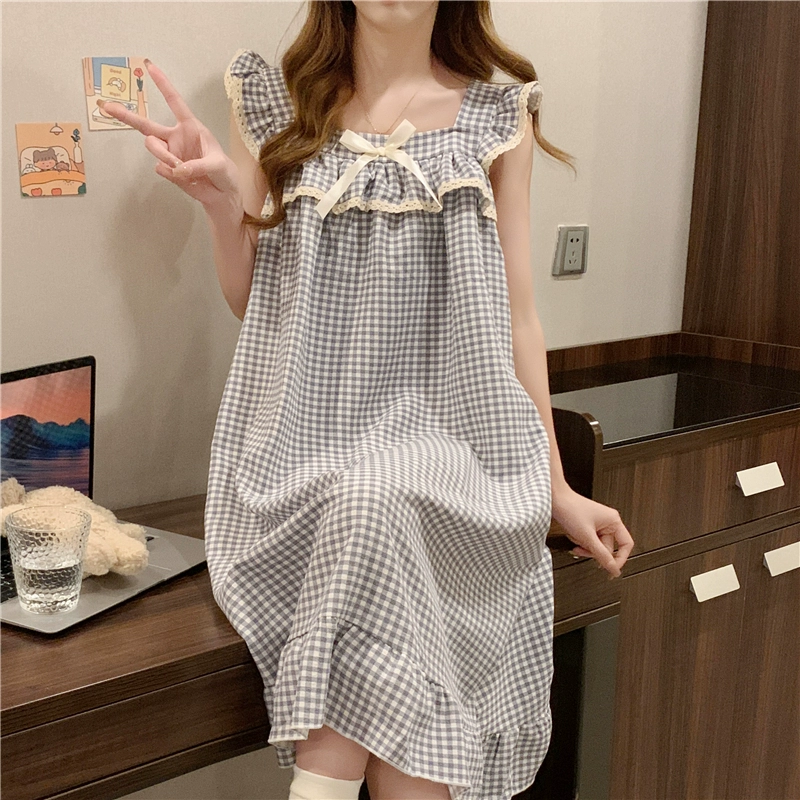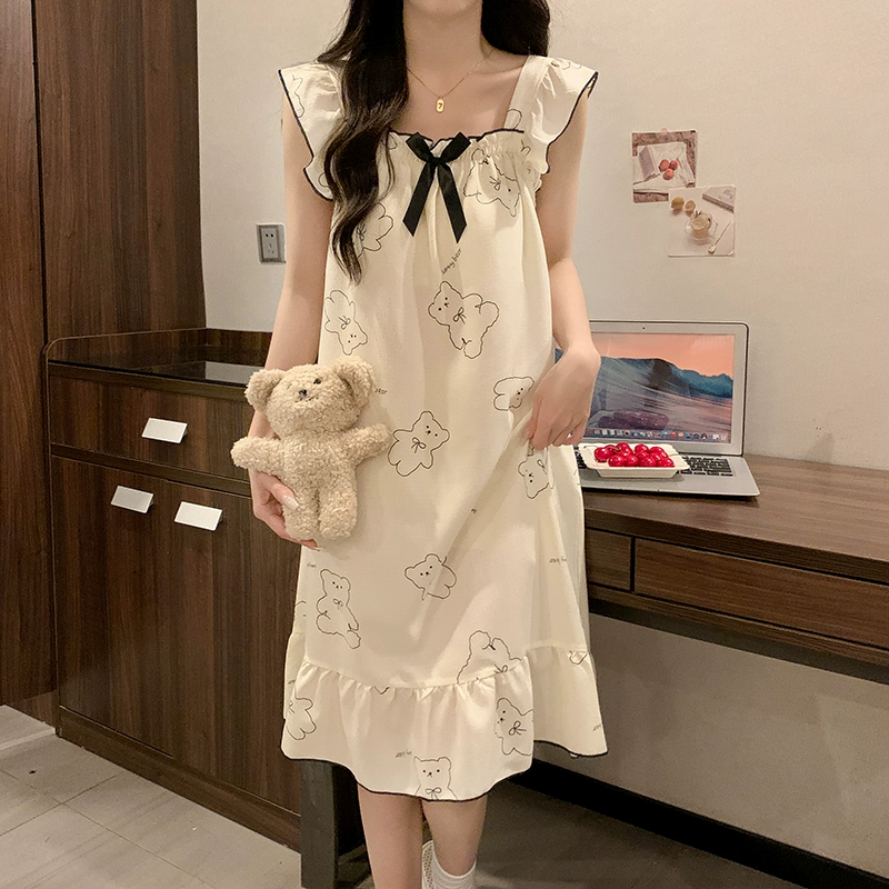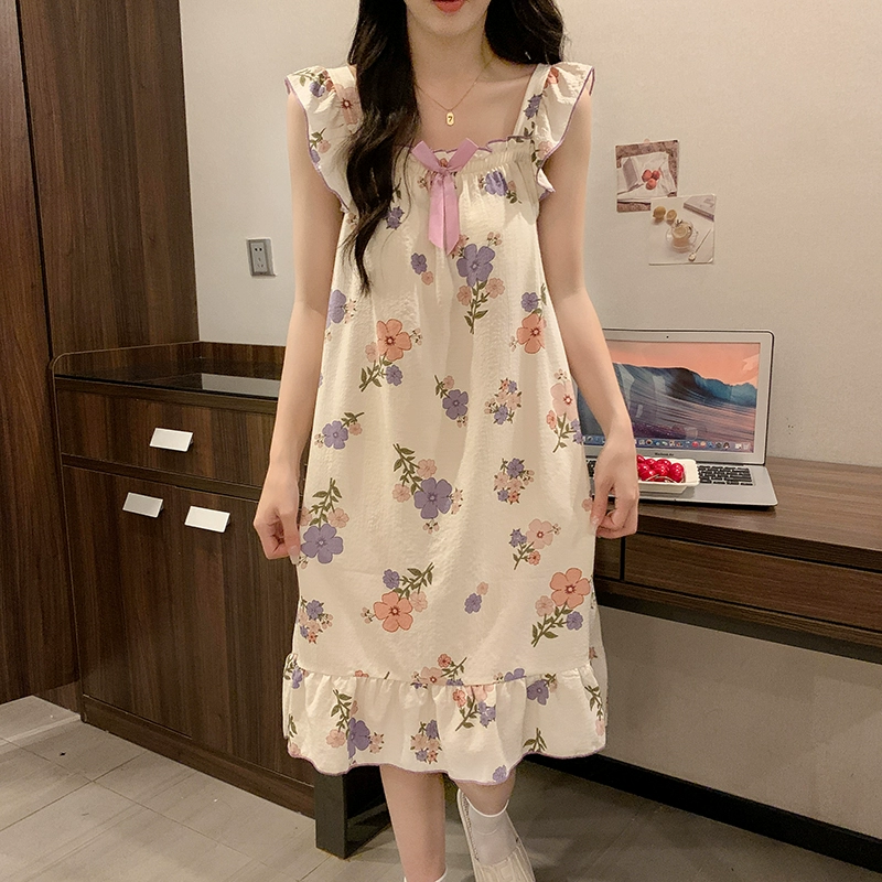 | nameOriginal | Nightgown for women summer day with breast pads and ruffles princess cotton pajamas dress loose suspenders home wear set |