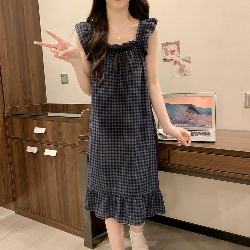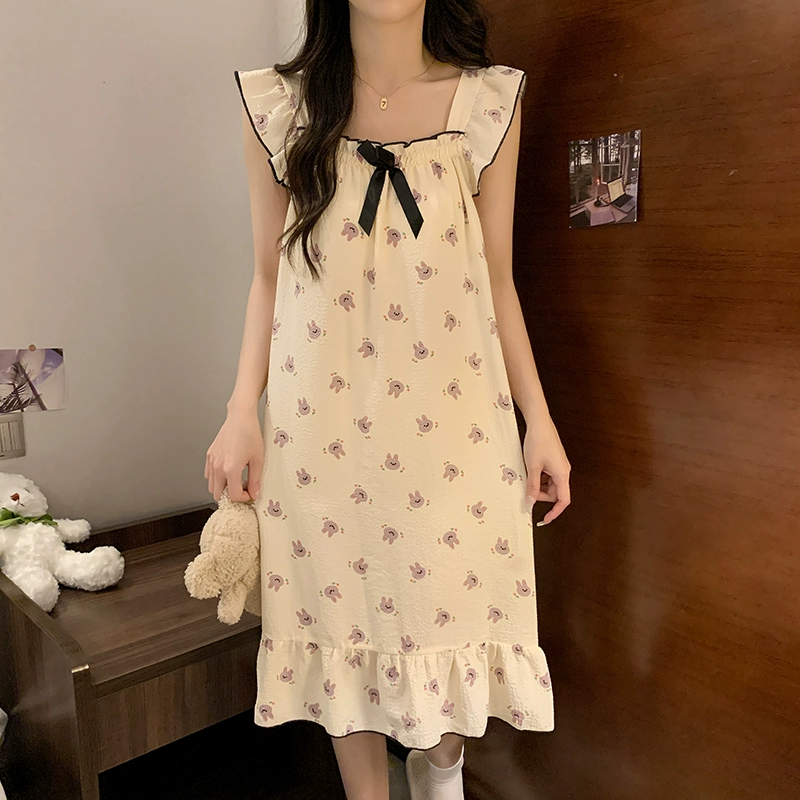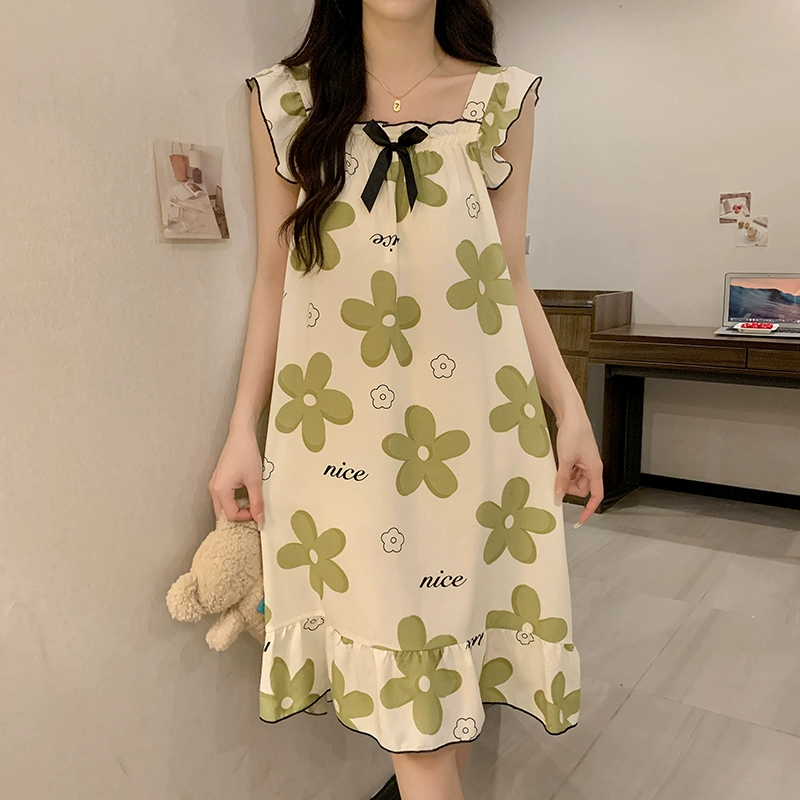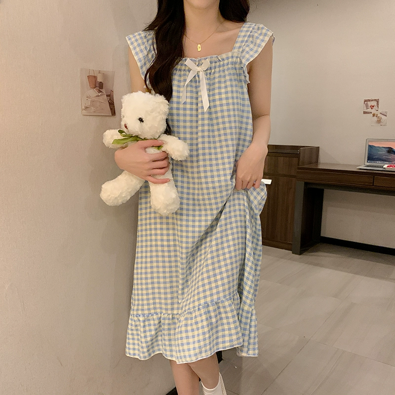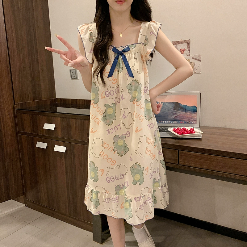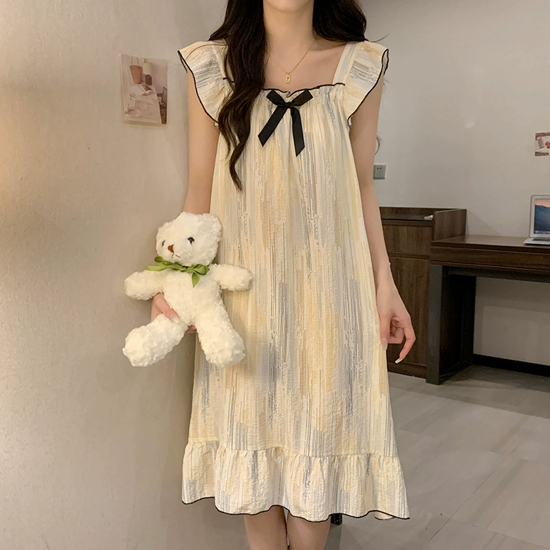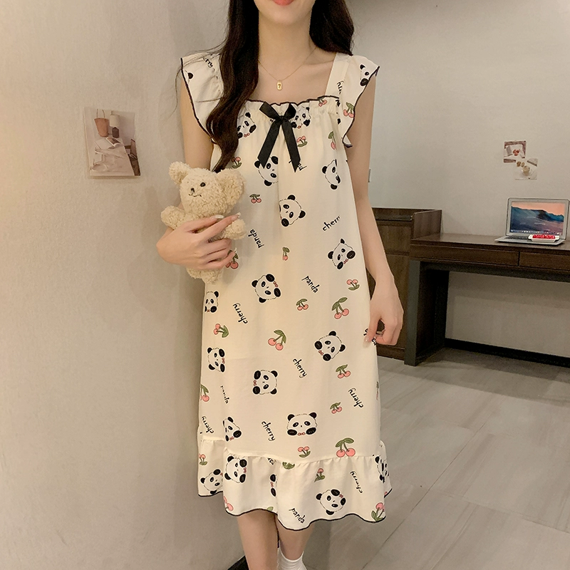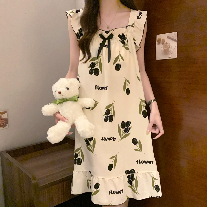 | nameOriginal | Nightgown for women summer day with breast pads and ruffles princess cotton pajamas dress loose suspenders home wear set |