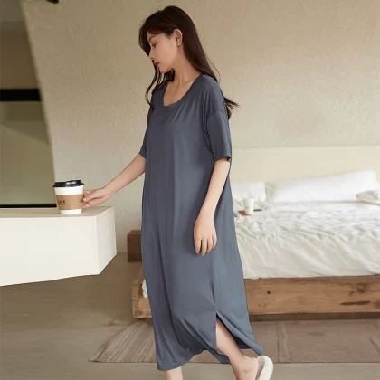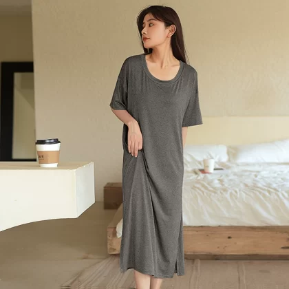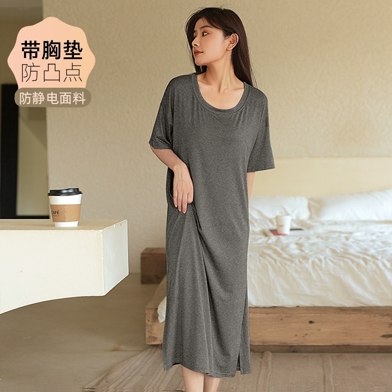 Nightgown for women summer modal with chest pad long knee-length thin short-sleeved pure lust style plus size skirt spring and summer pajamas