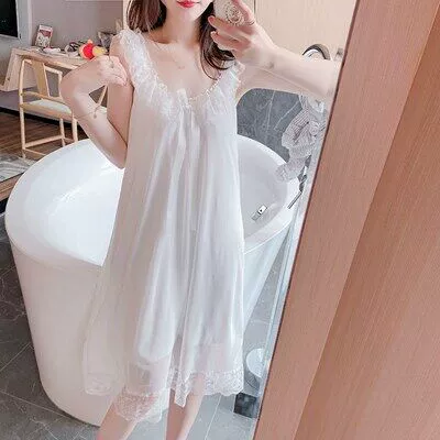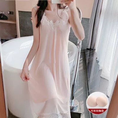 | nameOriginal | Nightgown for women summer suspenders sexy thin lace pajamas for pregnant women with breast pads pure cotton modal palace princess style |