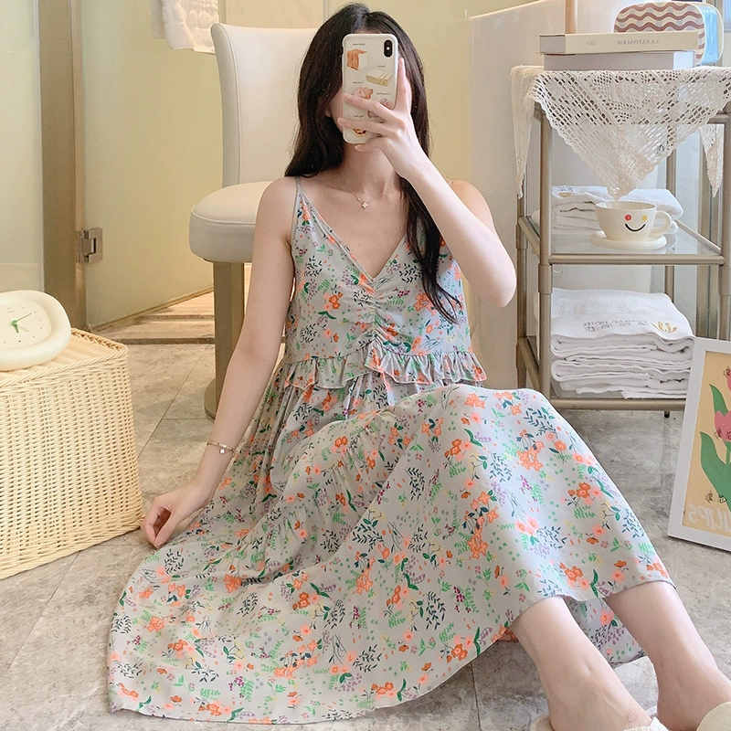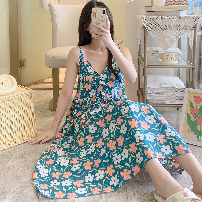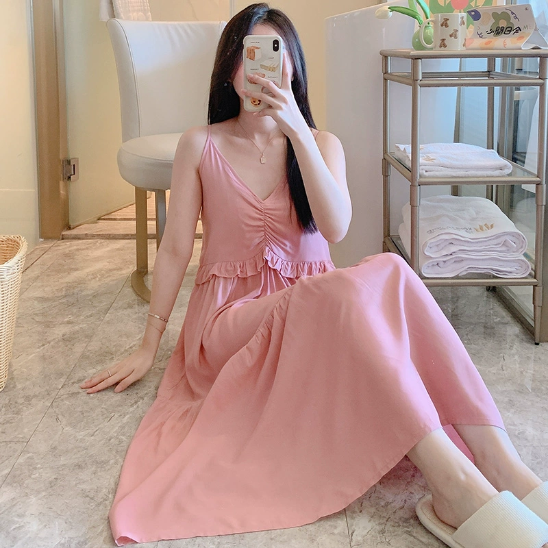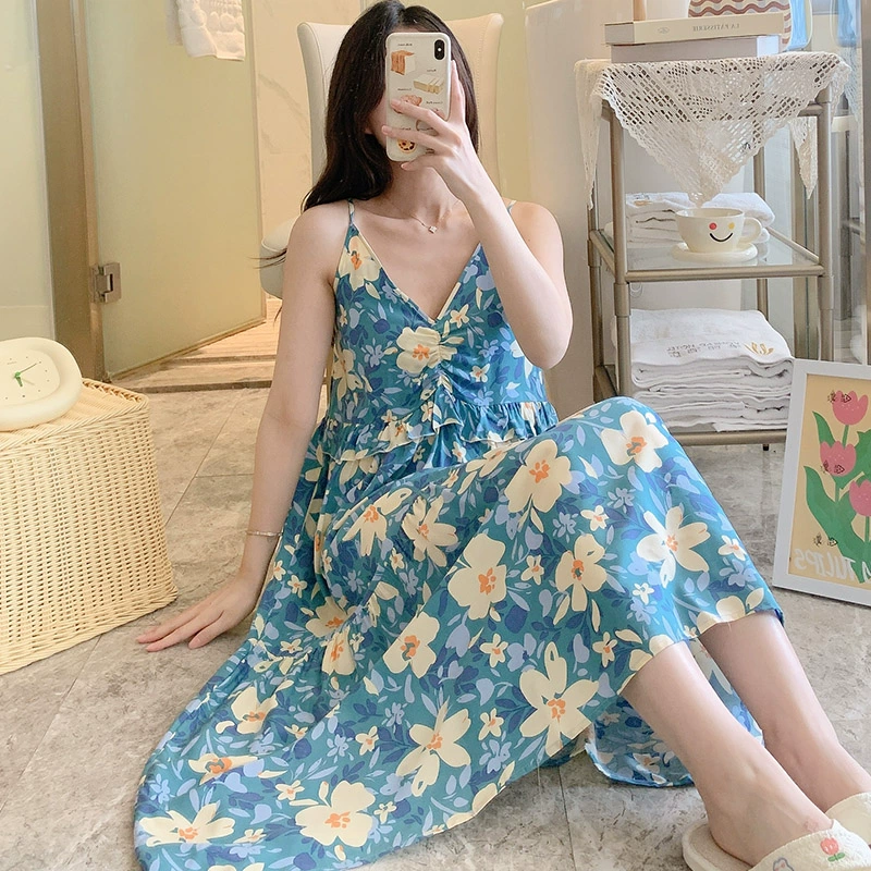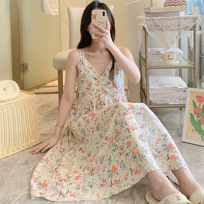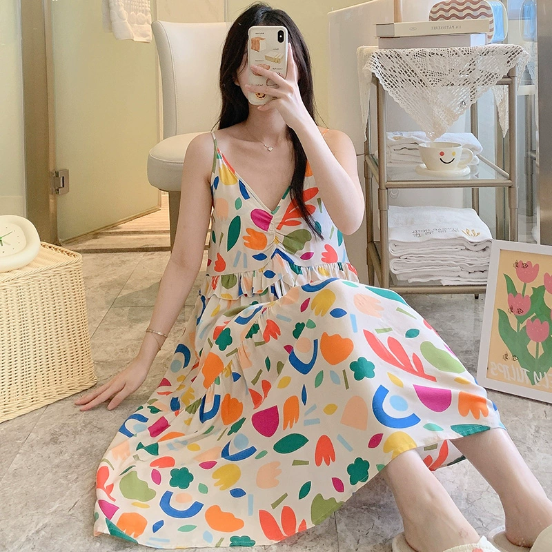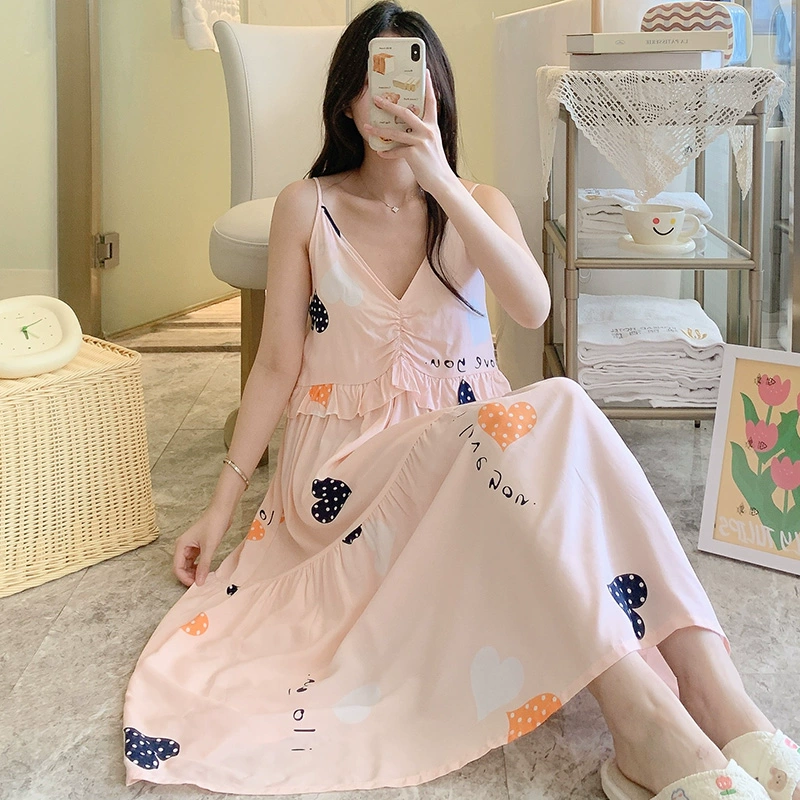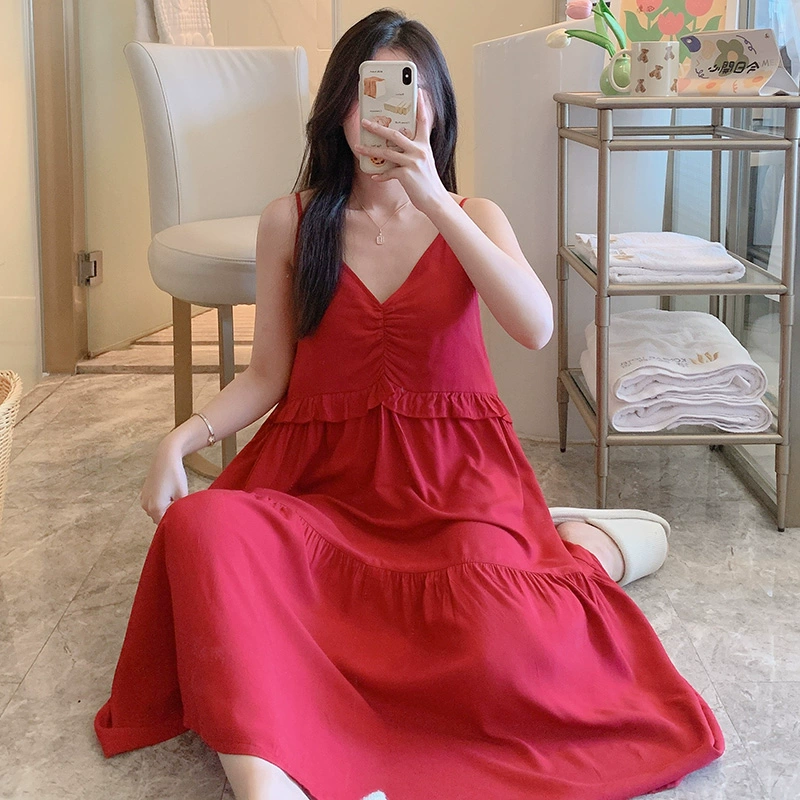 | nameOriginal | Nightgown with breast pads for women summer sexy suspender cotton silk pajamas home wear bright red bridal anti-bump cotton silk skirt |