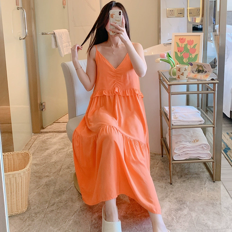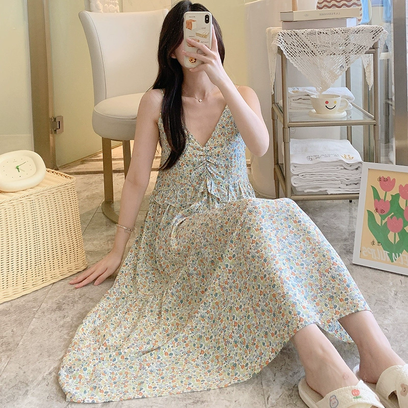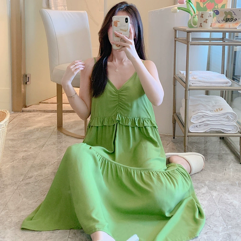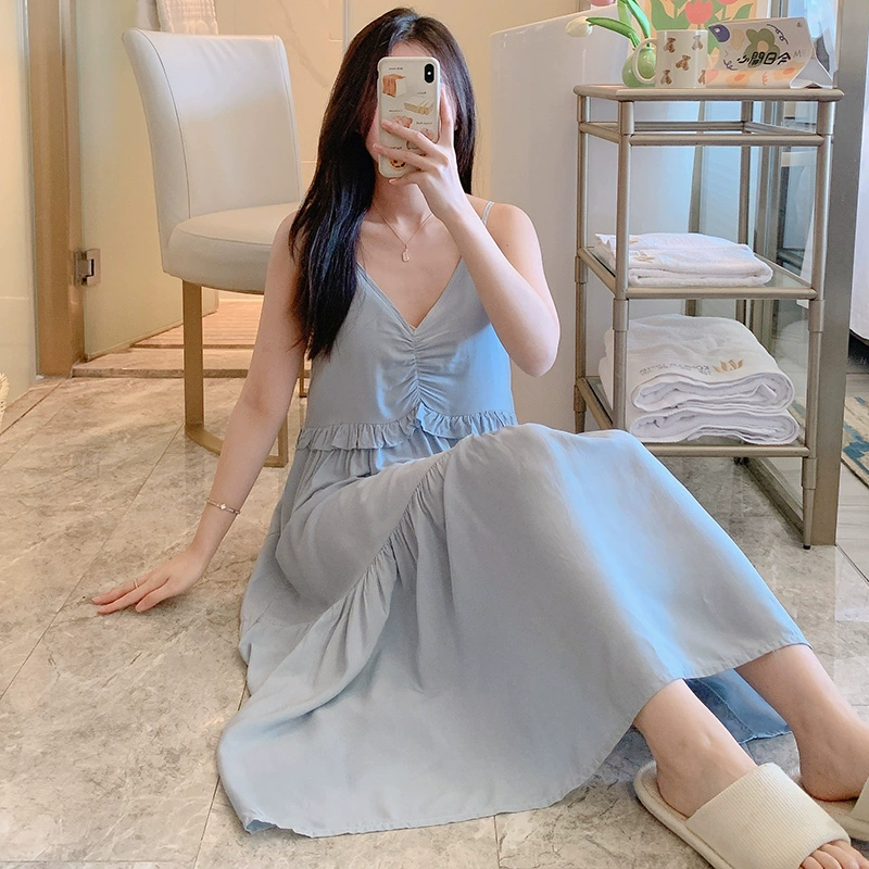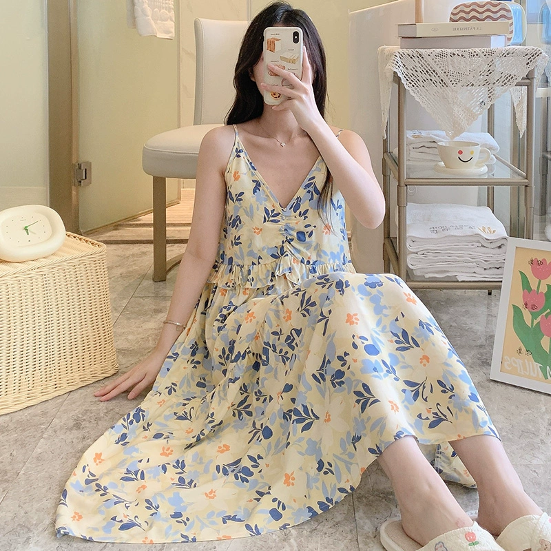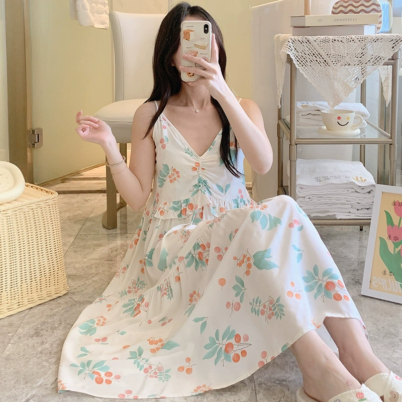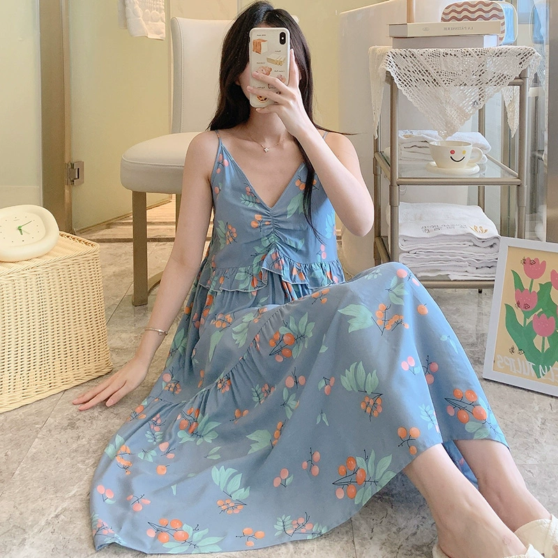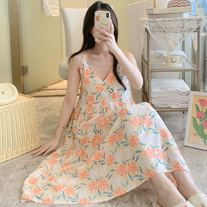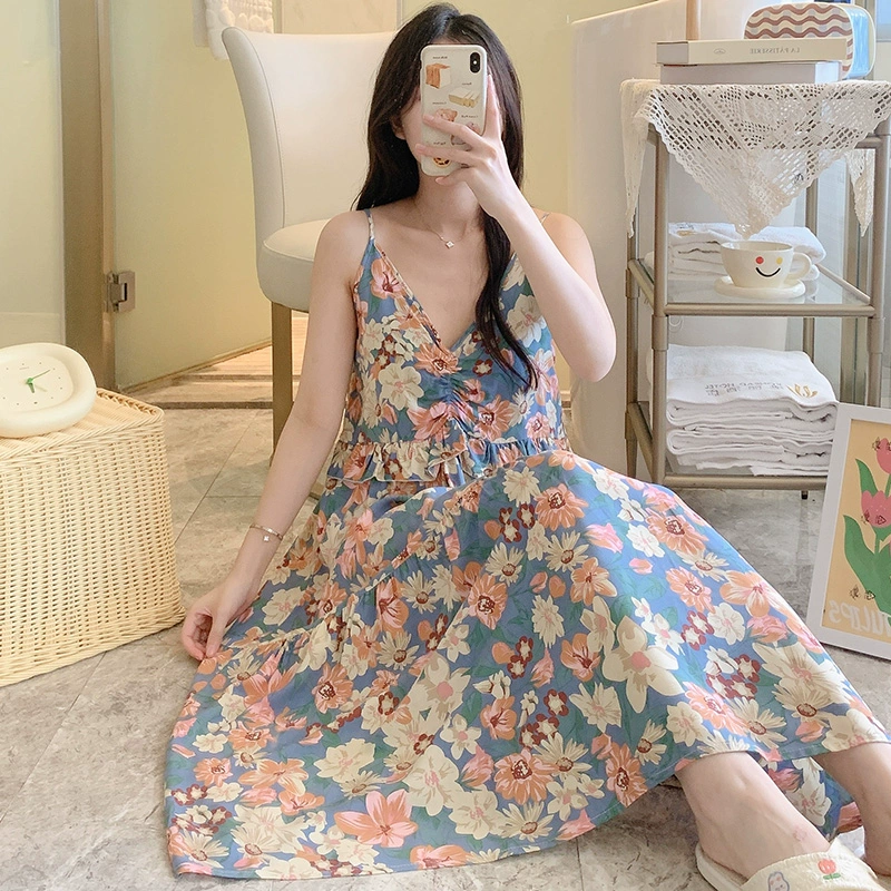 | nameOriginal | Nightgown with breast pads for women summer sexy suspender cotton silk pajamas home wear bright red bridal anti-bump cotton silk skirt |