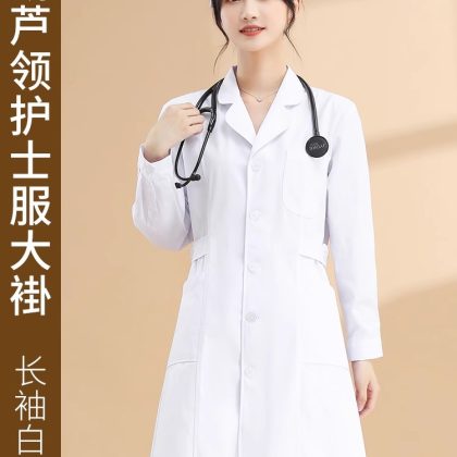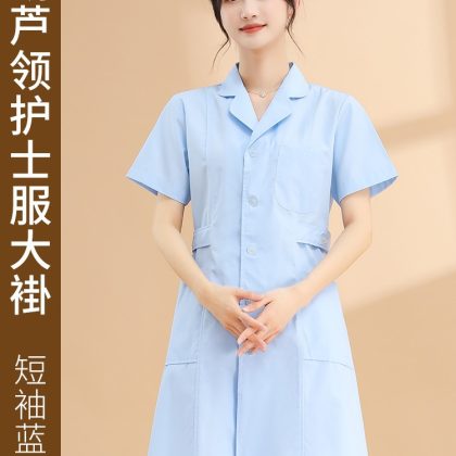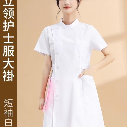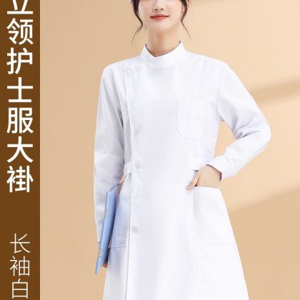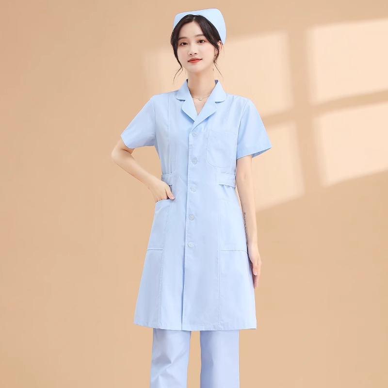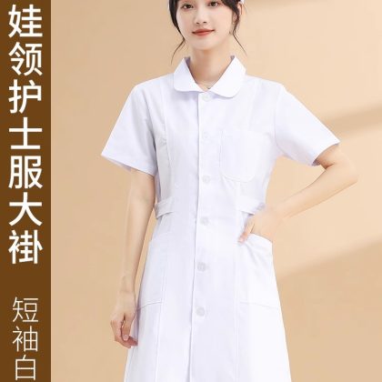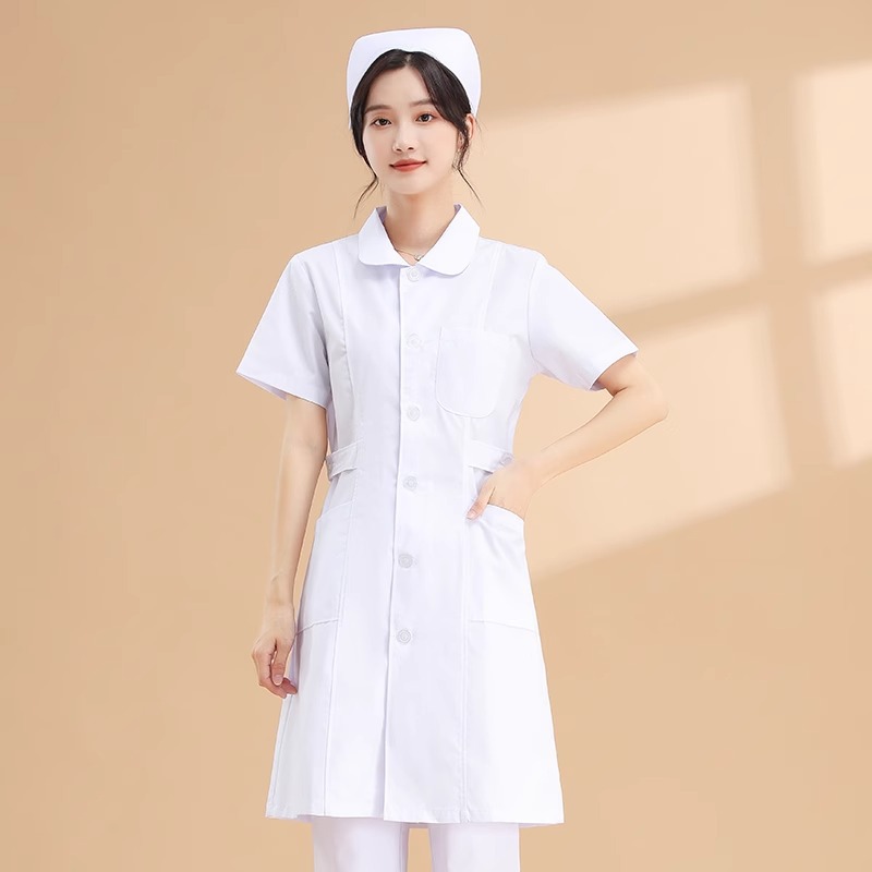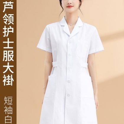 | nameOriginal | Nightingale nurse uniform long-sleeved lab coat women's round neck short-sleeved summer white lab coat large size pharmacy work uniform White |