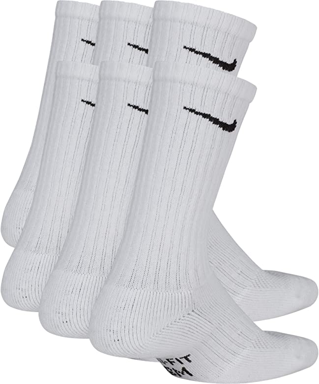| nameOriginal | Nike Kids' Performance Cushioned Crew Training Socks (6 Pair), Girls & Boys' Socks with Cushioned Comfort & Dri-FIT Technology, White/Black, M |