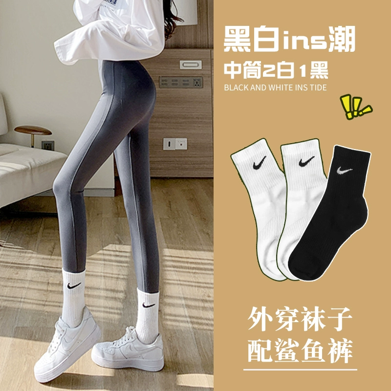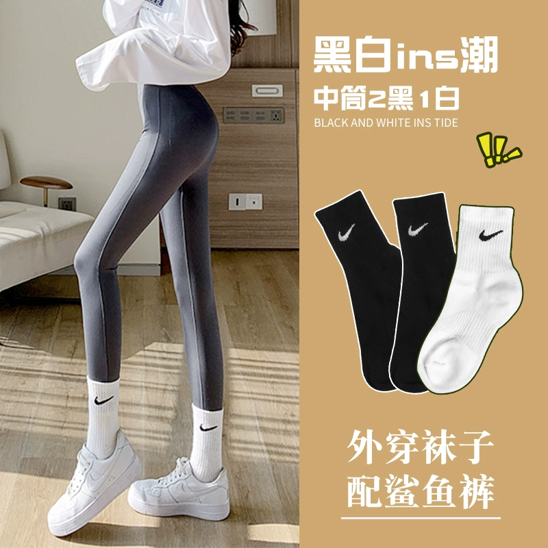 | nameOriginal | nike/Nike socks women's mid-calf spring and autumn style with shark pants stockings summer white men's sports socks calf |
