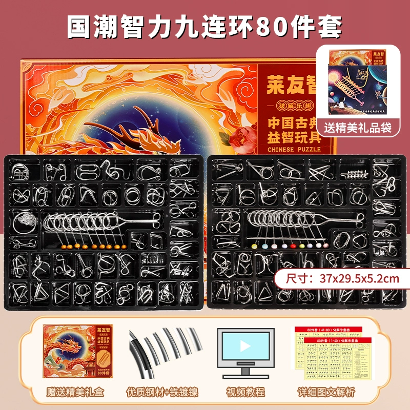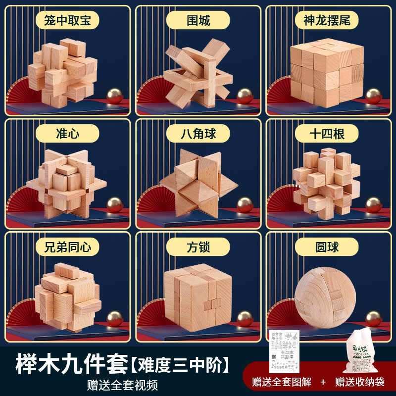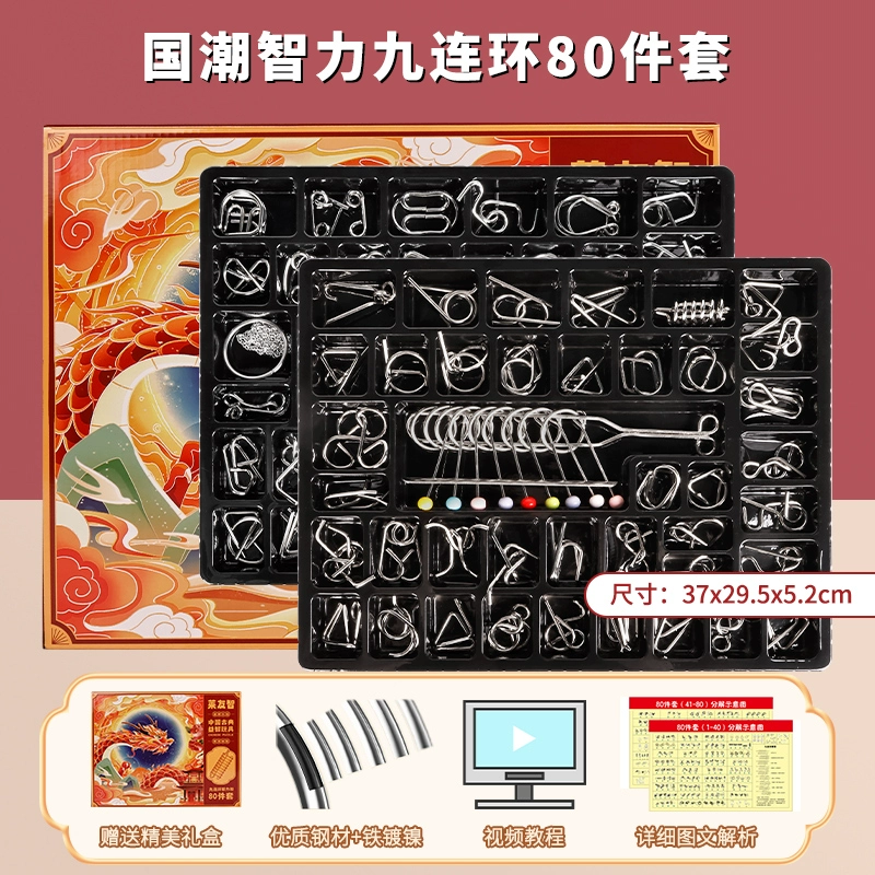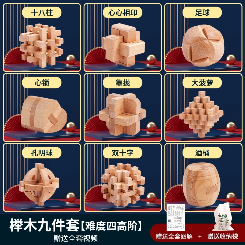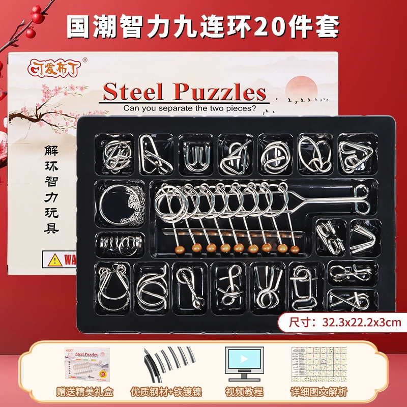 | nameOriginal | Nine-link intellectual unlocking ring unbuckle educational toy Luban lock Kongming lock set for children and primary school students 24-piece set |