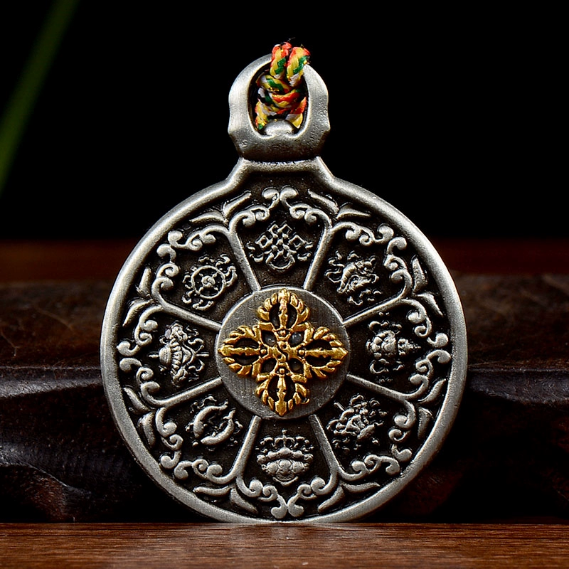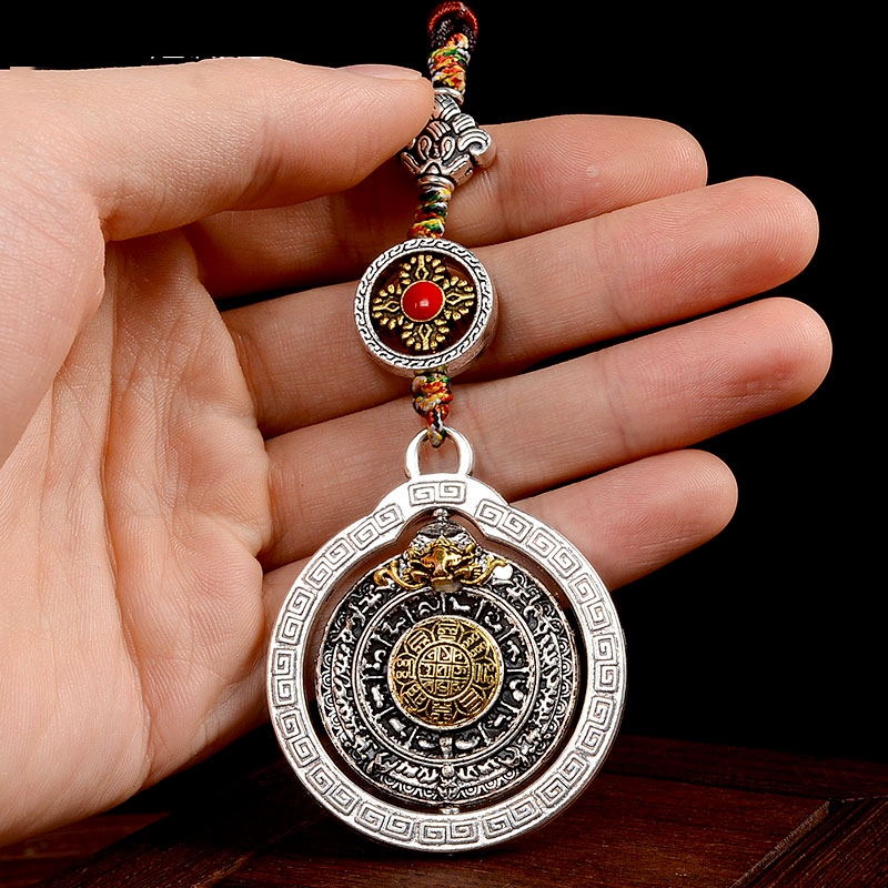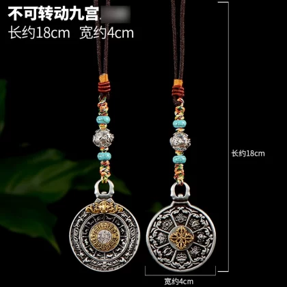 | nameOriginal | Nine Palaces Bagua Tibetan Decoration National Style Rotatable Copper Cone Alloy Eight Auspicious Pendant Waist Tag |