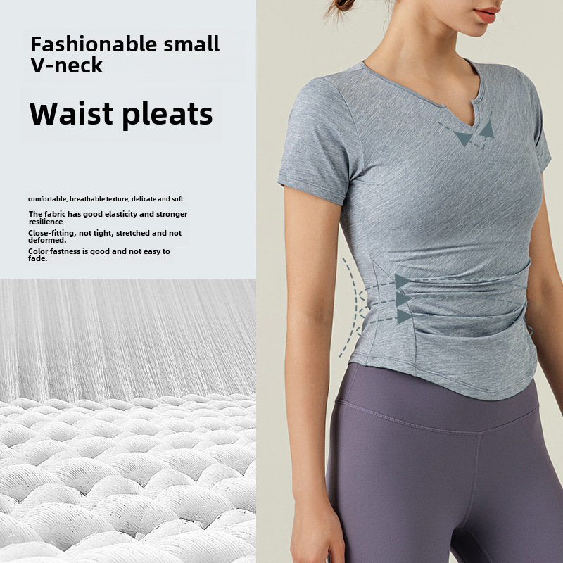 | nameOriginal | Ningbo Dashu V-neck Pleated Slim Yoga Short-sleeved Fitness Clothing Women's Top Spring and Summer New Sports T-shirt |