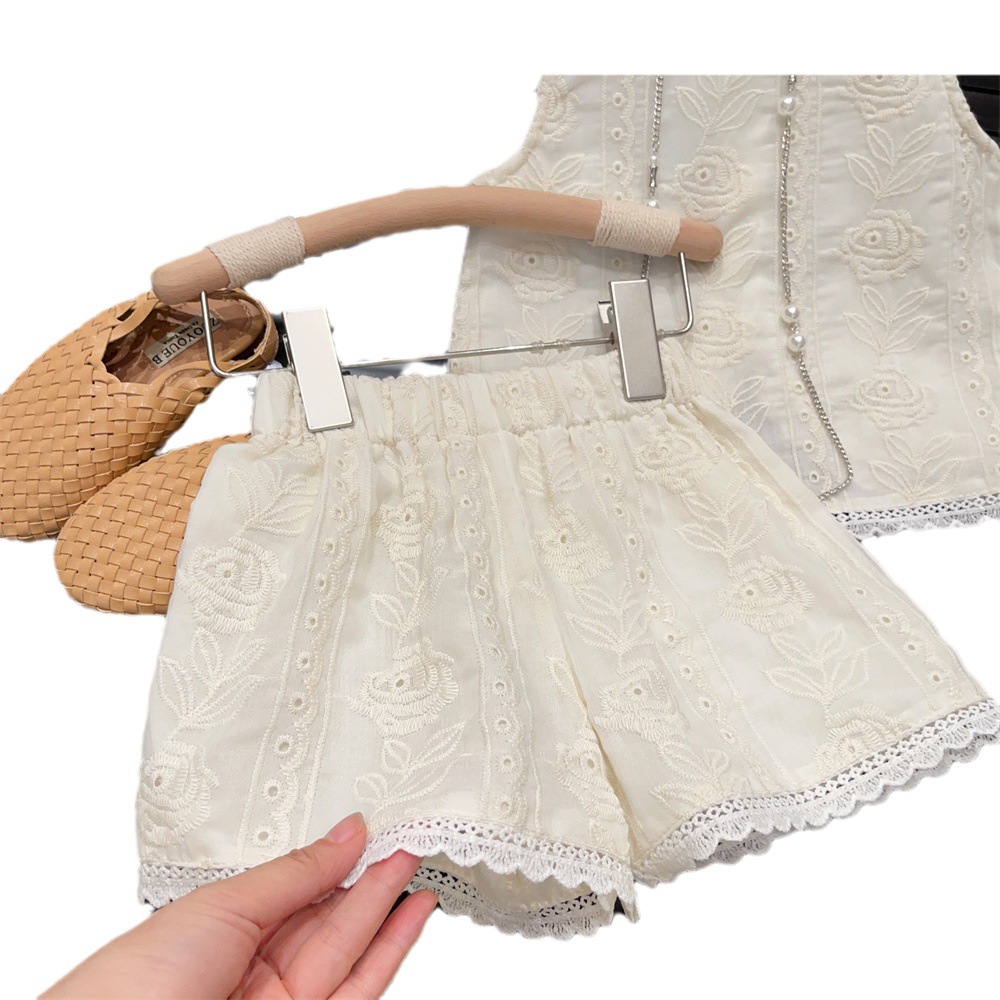 | nameOriginal | Ningli Children's Wear Girls' Western Style Internet Popular Summer New Suit Children's Summer Hollow Lace Vest Shorts Suit |