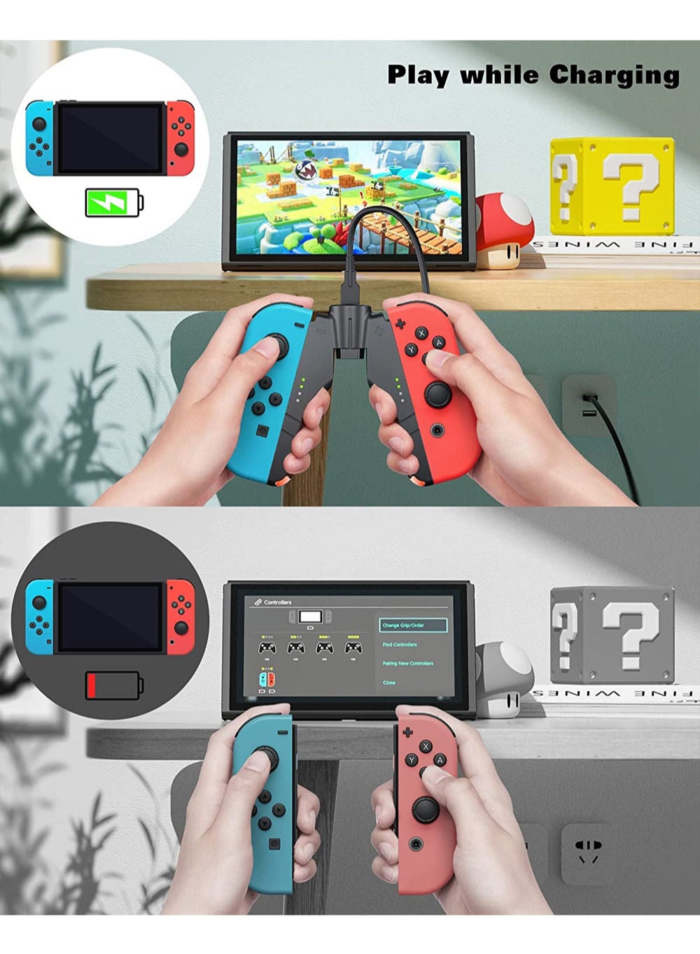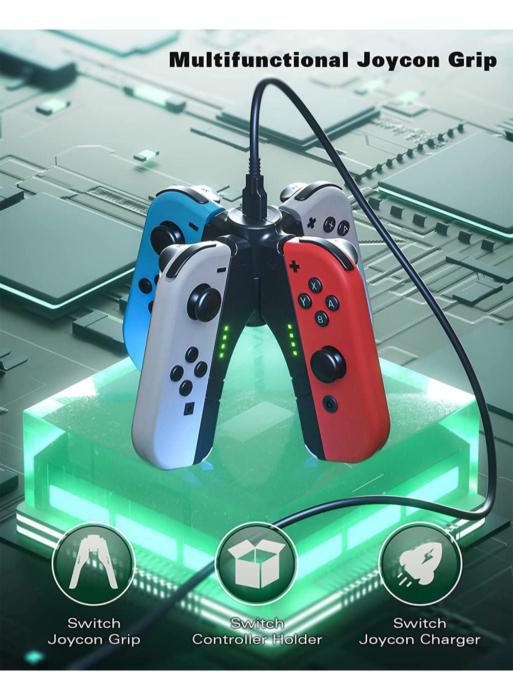 Introducing the ultimate accessory for Nintendo Switch gamers – the 4 in 1 Joy-Con Charger Grip! This innovative grip not only provides a comfortable and ergonomic way to hold your Joy-Con controllers, but also doubles as a charging dock for up to four Joy-Con controllers at once.