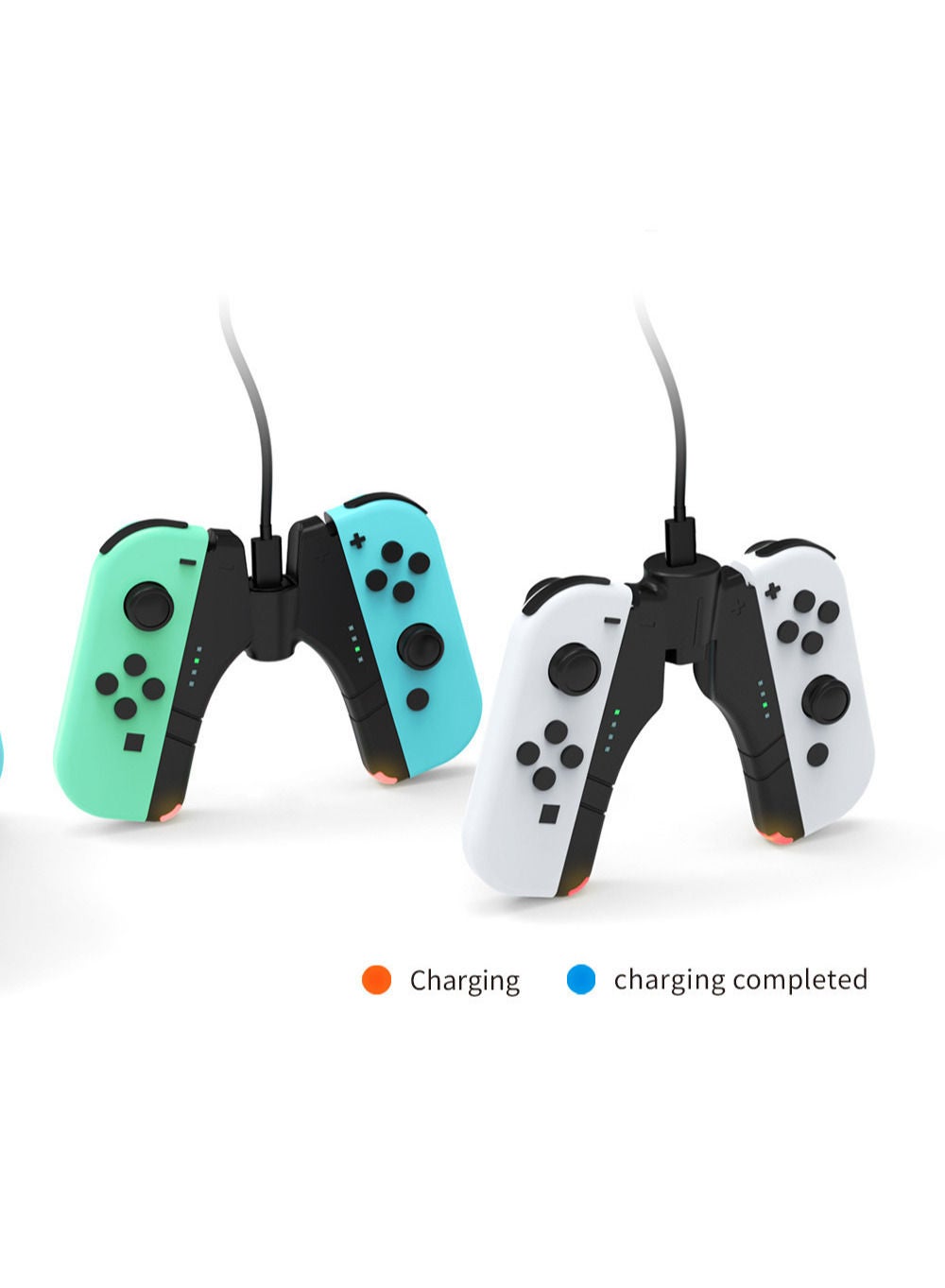 With its sleek and compact design, the 4 in 1 Joy-Con Charger Grip is perfect for on-the-go gaming. Simply slide your Joy-Con controllers into the grip and they will begin charging automatically. The LED indicators on the grip will let you know when your controllers are fully charged and ready to go.