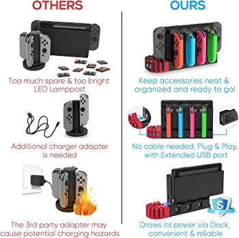 With 9 game card storage slots, this charging dock is also the perfect storage solution for your favorite Nintendo Switch games. You can keep all your games organized and easily accessible, so you can switch between games with ease.