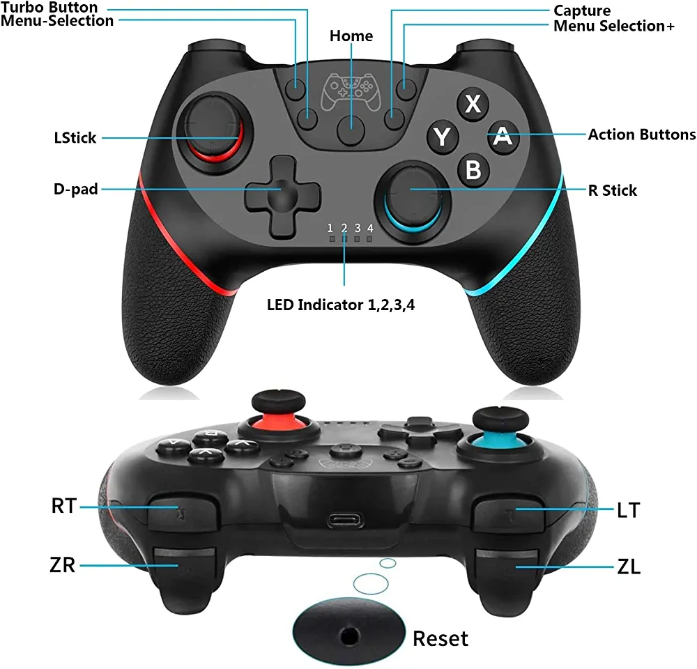 1. Wireless Connection to the Switch Console: To connect the controller wirelessly, turn off the controller and press and hold the HOME button. After 7 seconds, the LED lights will change from slow flashing to fast flashing, indicating that you have entered the Switch home page. From there, select “controller” and follow the instructions to pair the controller with the console. Once the controller is in standby mode, you can automatically reconnect by pressing and holding the HOME button for 3 seconds.