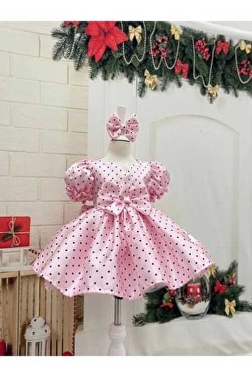 Polka Dot Candy Pink (Satin) Girls’ Dress With Zipper A very stylish dress that your child can use on special occasions Birthdays Engagement henna feast knows to wear on special occasions