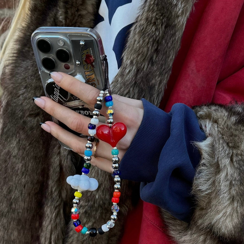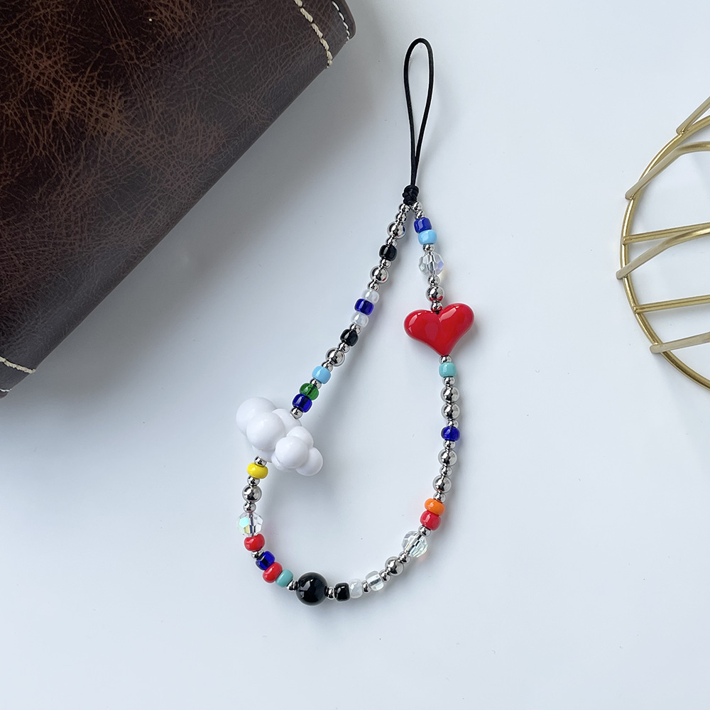 | nameOriginal | Nissi Spring and Summer Atmosphere Colorful and Colorful Imported Big Hole Glass Rice Beads Red Heart White Cloud Mobile Phone Chain Lanyard Piece |