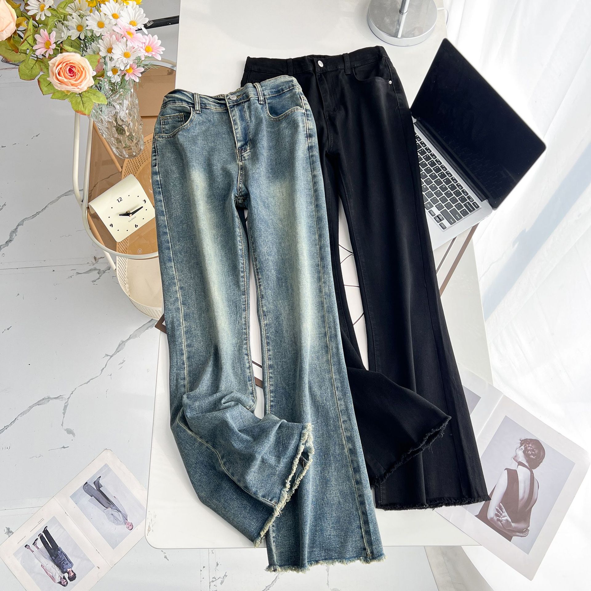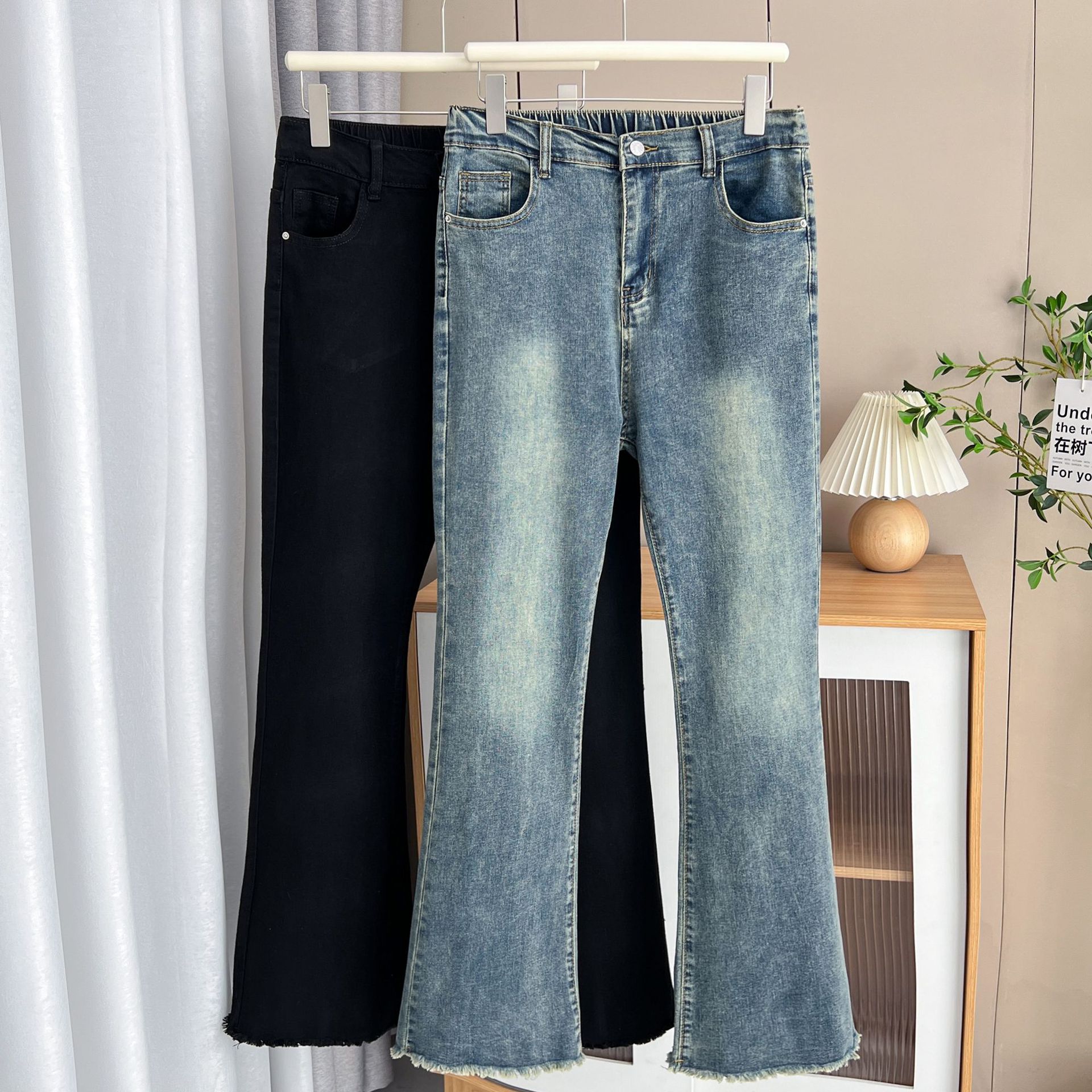 | nameOriginal | Niu Daxia boutique jeans 200kg fat MM spring and autumn slim raw horseshoe pants plus size women's fashion 9288 |