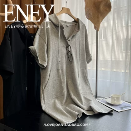 Niuhuo single casual hooded skirt fat mm short sleeves