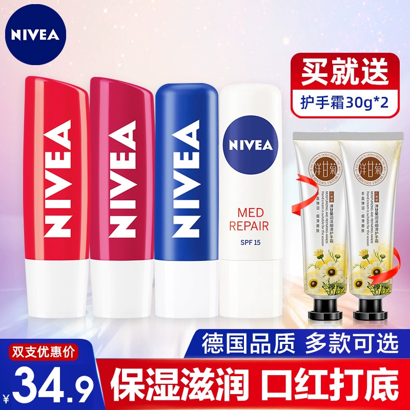 Nivea lip balm for women, moisturizing, hydrating, discolored, colored lipstick for students, special anti-drying, winter mouth whitening