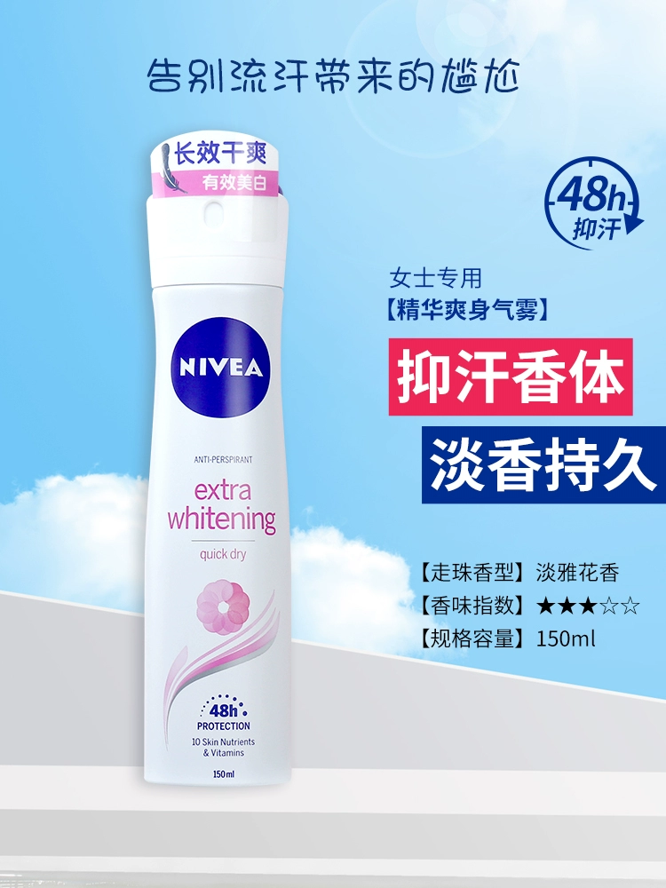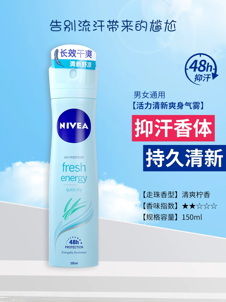 | nameOriginal | Nivea Spray Dry Moisturizing Fragrance Antiperspirant |