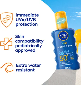 | nameOriginal | NIVEA SUN Kids Spray, UVA & UVB Protection, Protect & Play Moisturizing, SPF 50+, 200ml |