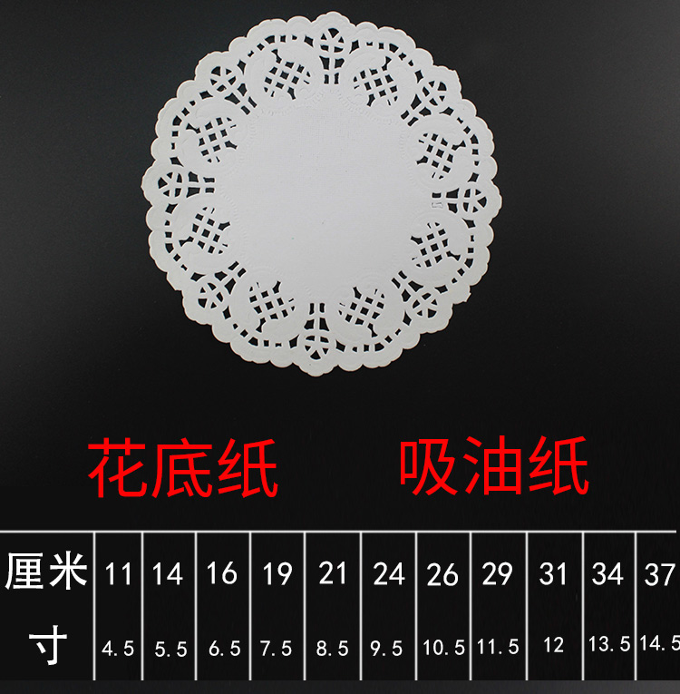 | nameOriginal | NJE0 disposable thickened flower bottom paper fried pizza oil-absorbing paper baking cake lace paper round dessert pad paper |