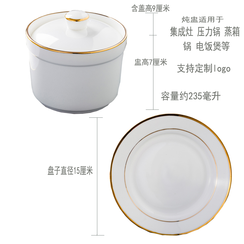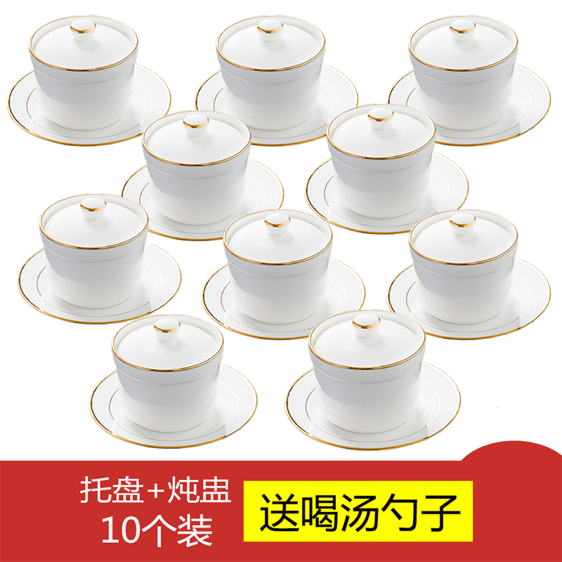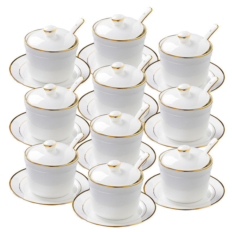NJE0 golden edge soup pot with lid tray tableware swallow nest bowl water-proof stew pot steamed Bowl dessert pot steamed egg pot small