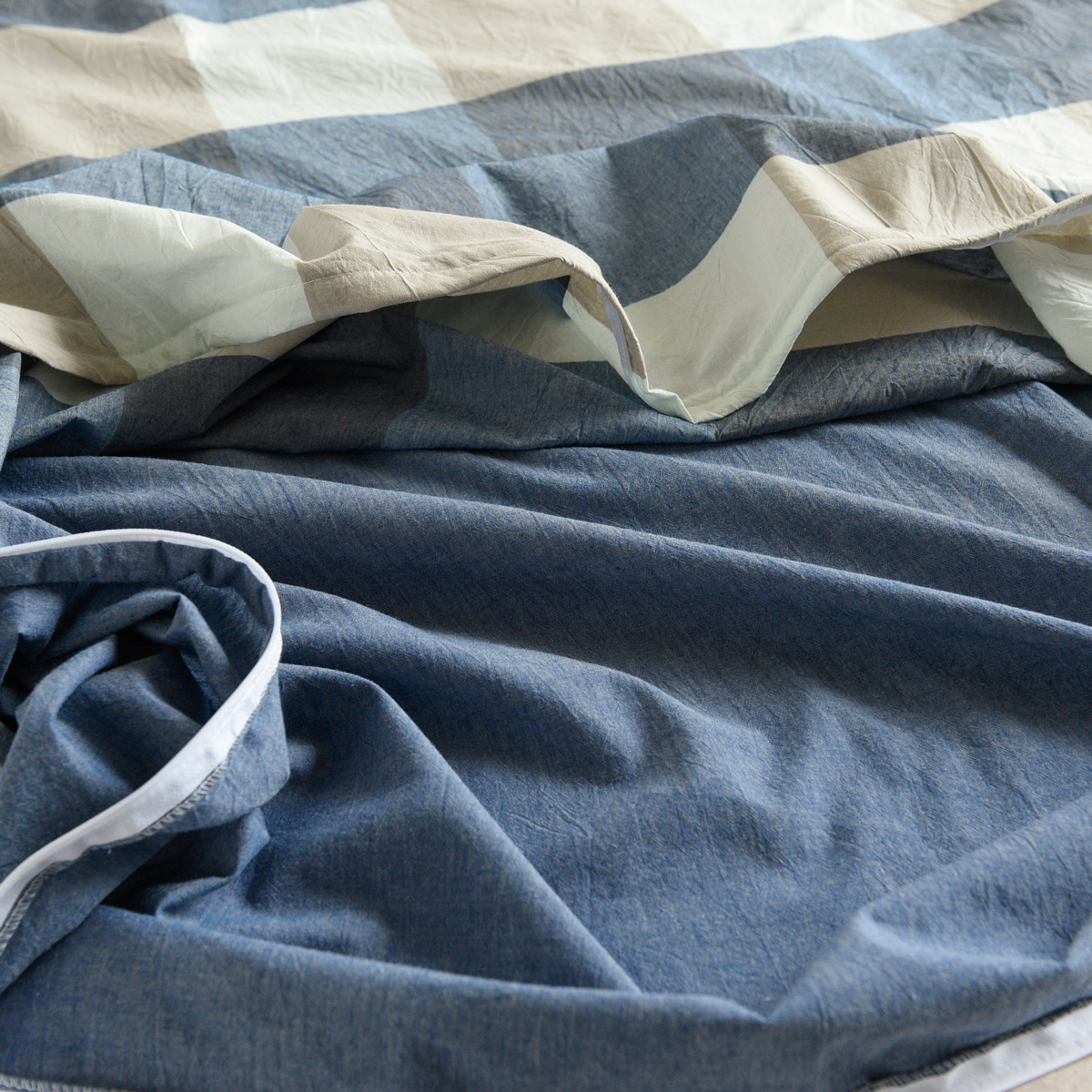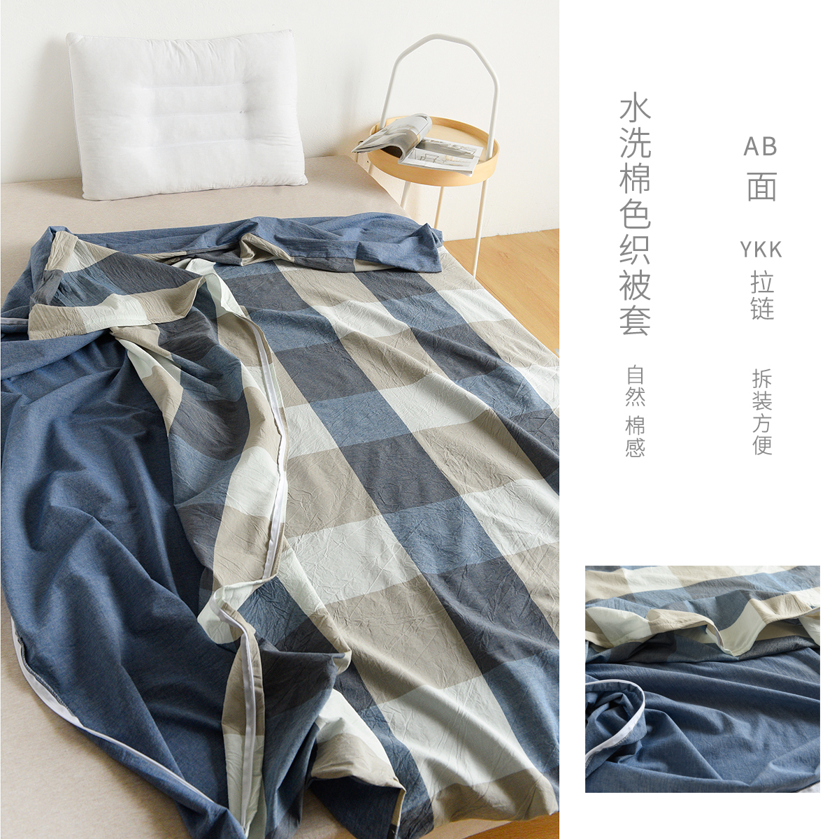 NJE0 simple Japanese style washed yarn-dyed quilt cover Plaid quilt cover dormitory available Four Seasons bed