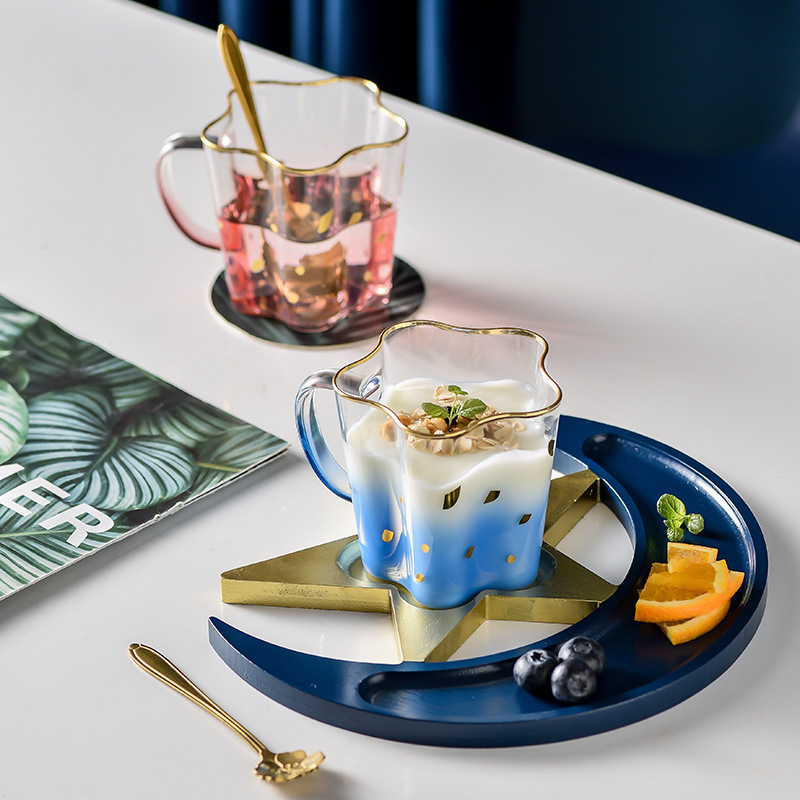 NN0I light luxury Transparent Coffee Cup Tea Cup Breakfast Cup afternoon tea cup saucer snack plate suit couple Cup glass