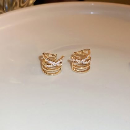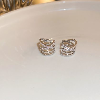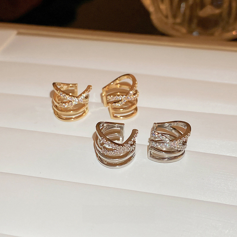 No ear hole zircon interlaced multi-layer ear clip small personality High sense ear clip fashion simple cold wind earrings