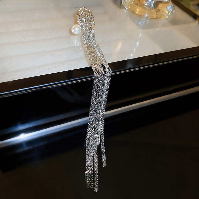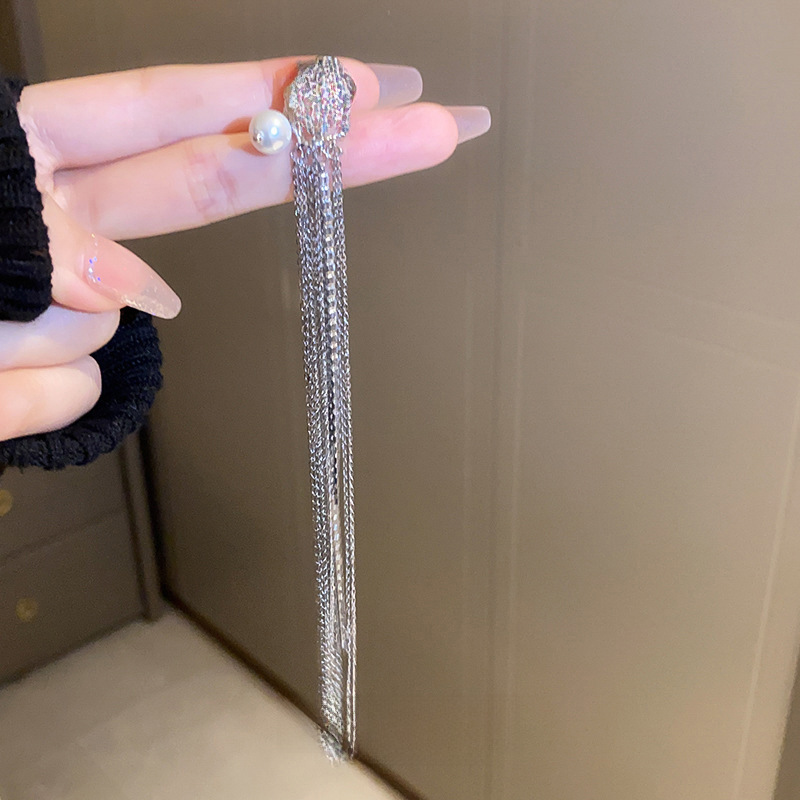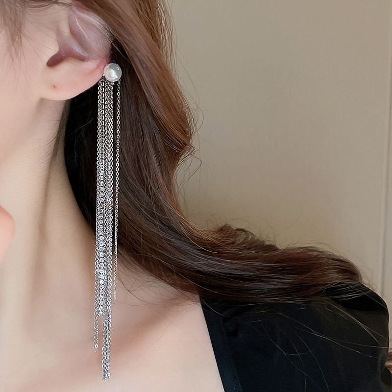 | nameOriginal | No Ear Holes with Diamond Pearl Tassel Ear Clip Light Luxury Niche Cold Style Earrings Fashion Simple Long Ear Clip for Women |
