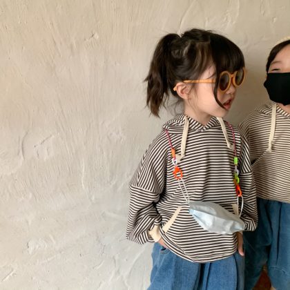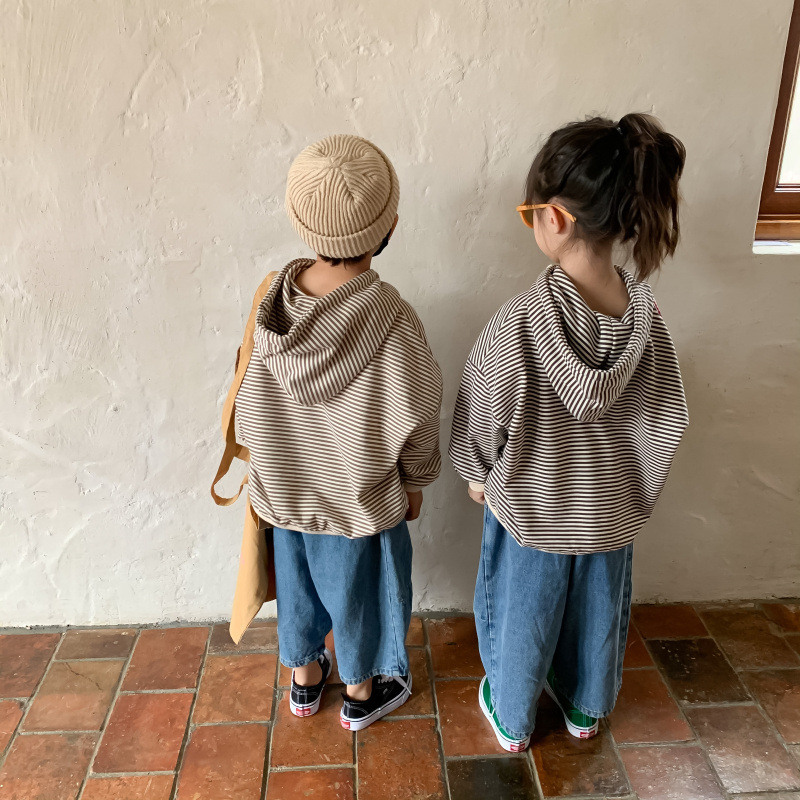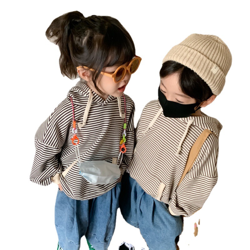 No Hat Rope Children's Sweatshirt 2023 Late Xiaomeng Spring Men's Treasure Women's Treasure Korean Style Casual Simple Style Distinctive Striped Sweatshirt