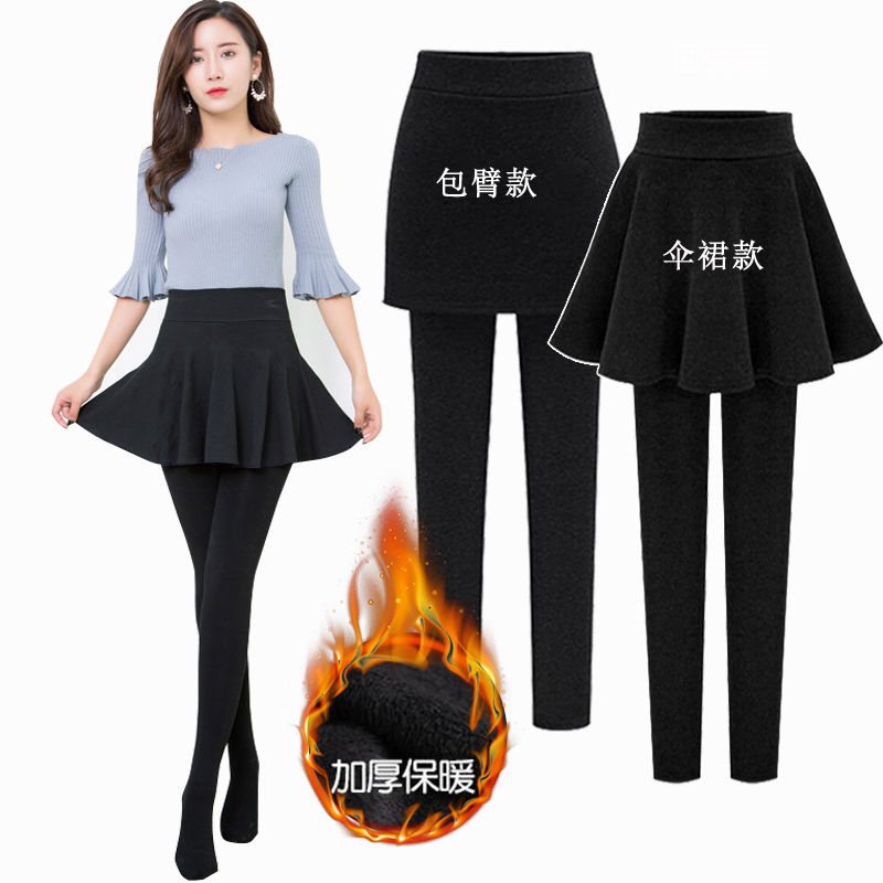 | nameOriginal | [No Pilling] new fleece-lined thick culottes fake two-piece leggings women's outer wear one-piece pants with pantskirt |