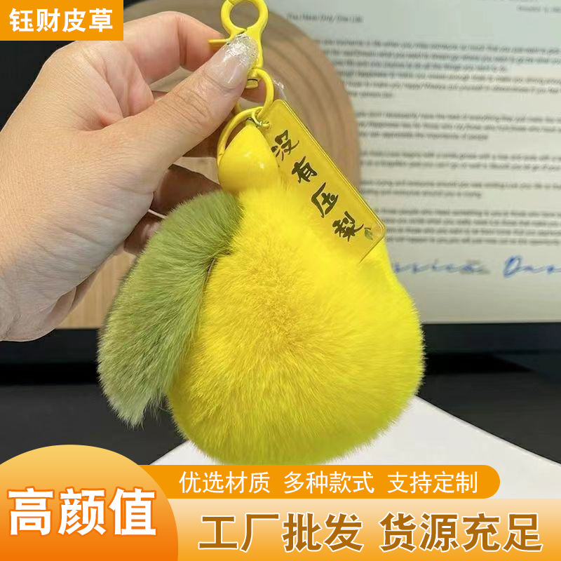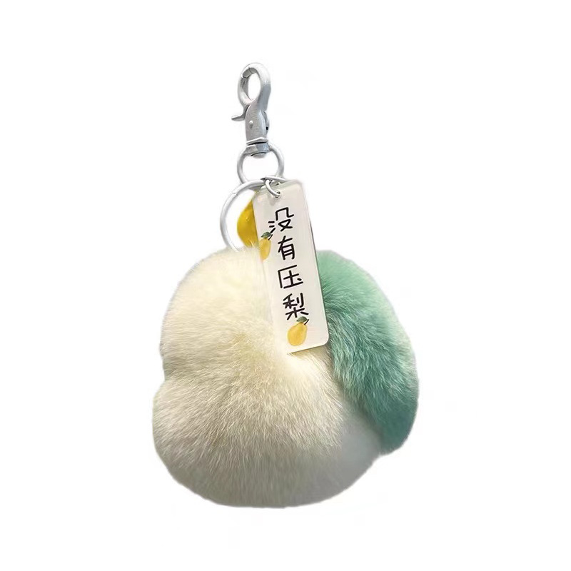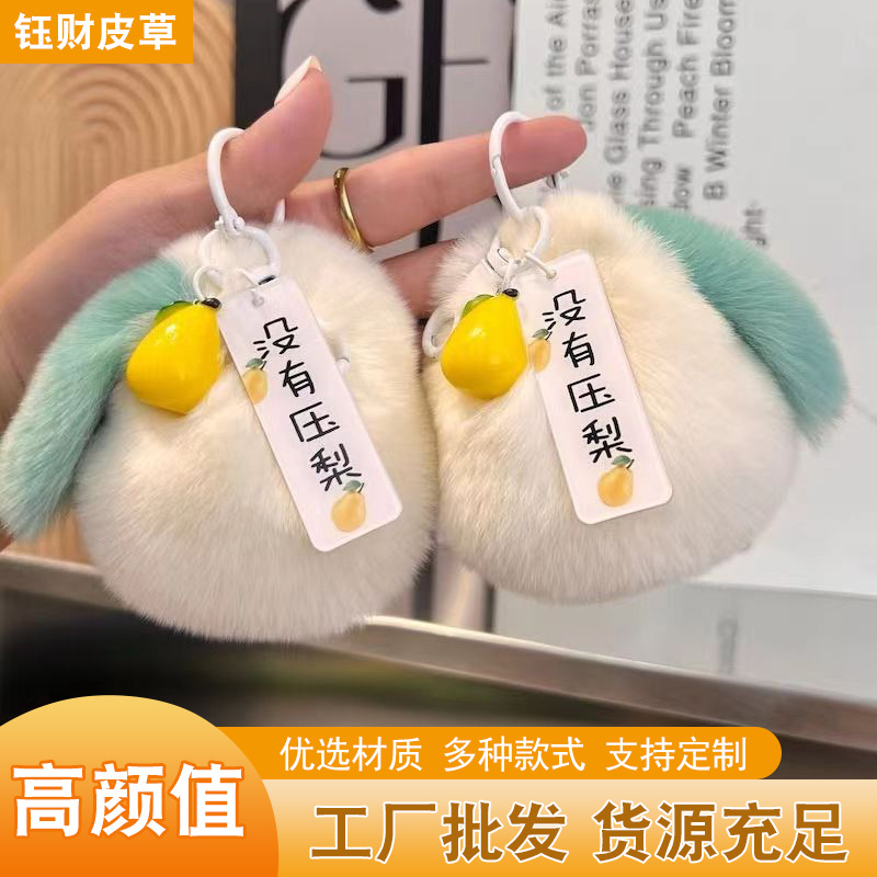 No pressure pear imitation Rex rabbit fur car keychain pendant ins fur ball schoolbag ornaments creative cartoon pear