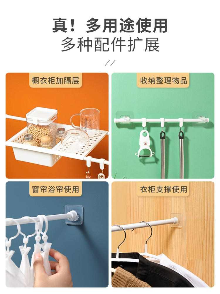 No punching, strong load-bearing capacity, wardrobe hanging rod support frame, telescopic rod, curtain, shower curtain hanging rod rack, partition bracket, sticky hook