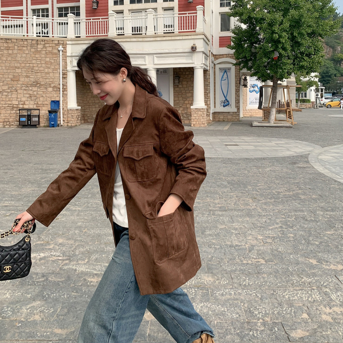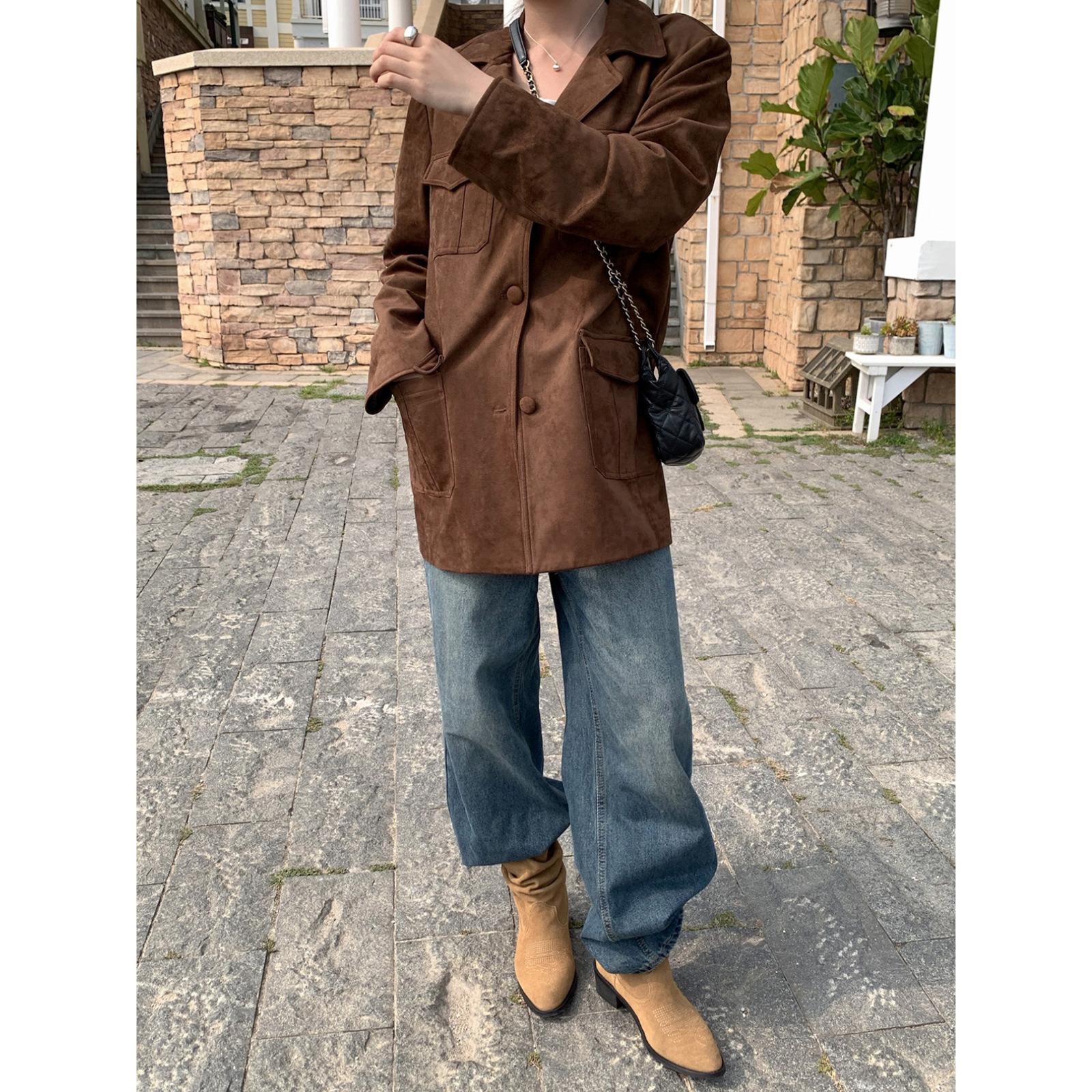 | nameOriginal | [No refund or exchange] suede coat winter Maillard women's brown leather coat women's split profile suit |