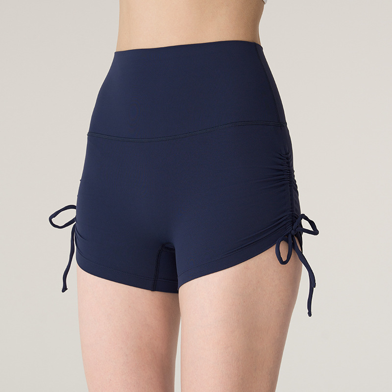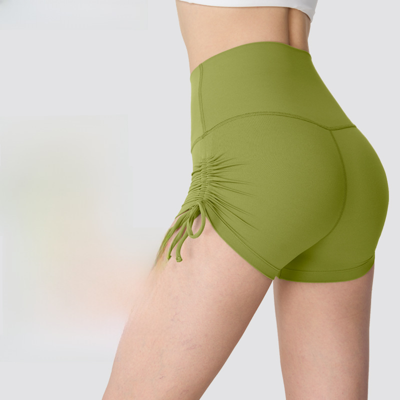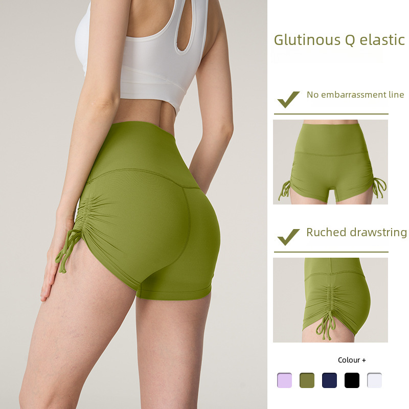 No size Lycra nude yoga shorts women’s pleated drawstring fitness shorts no T sports riding peach shorts
