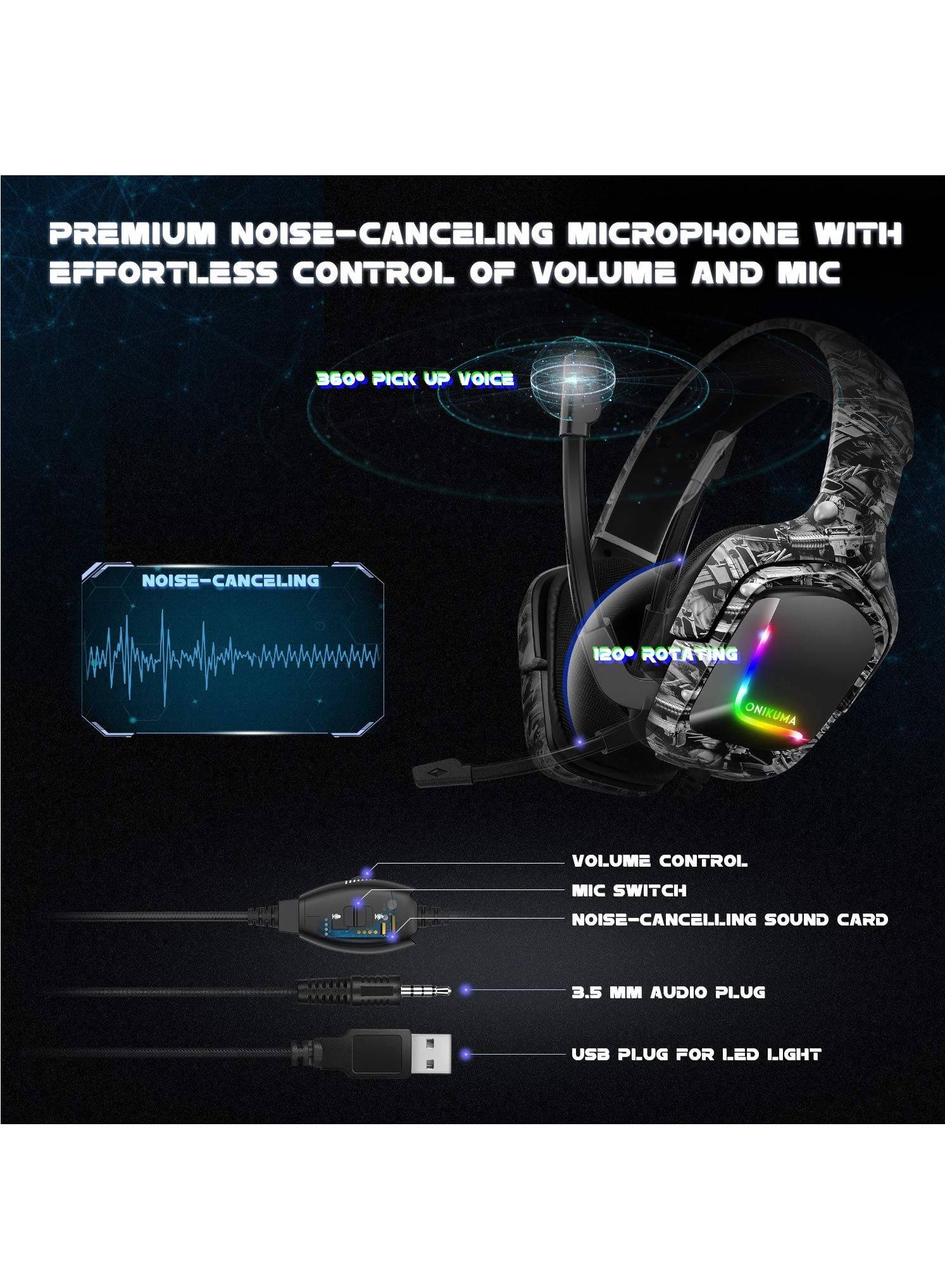 | nameOriginal | Camouflage Gaming Headset with Microphone Stereo Surround Sound Noise Cancelling Mic with Mute & Volume Control |