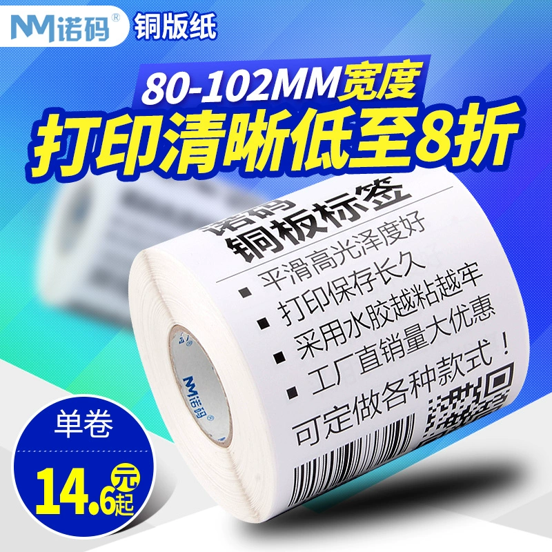 | nameOriginal | Noma copperplate label printing paper 80-102*30 40 50 60 70 76 100 120 150 152 carbon ribbon barcode copper plate self-adhesive sticker QR code barcode thermal transfer |