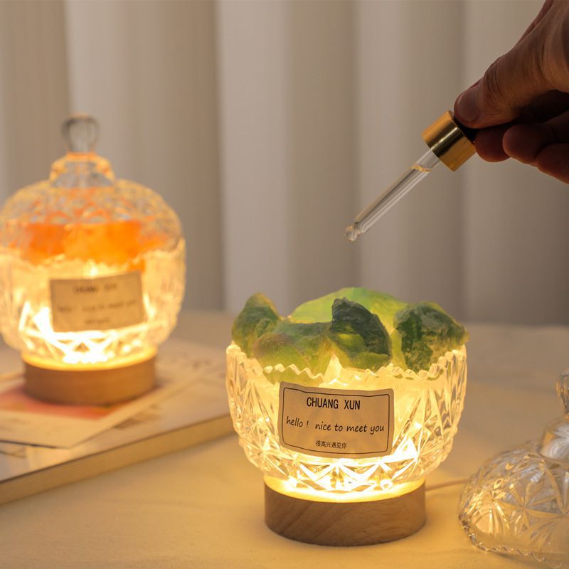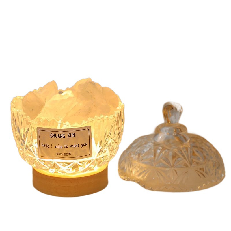 Non-fire Incense Lavender Stone Enlarging Incense Stone Cup Accompanying Gift Desktop Nightlight Gift Ornaments Natural Orange Salt Stone Crystal Stone