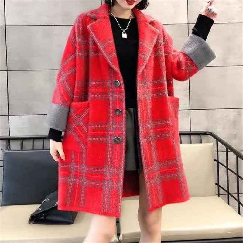 | nameOriginal | Non-lint faux mink velvet coat autumn and winter coat loose knitted women's woolen mid-length suit collar Plaid cardigan |