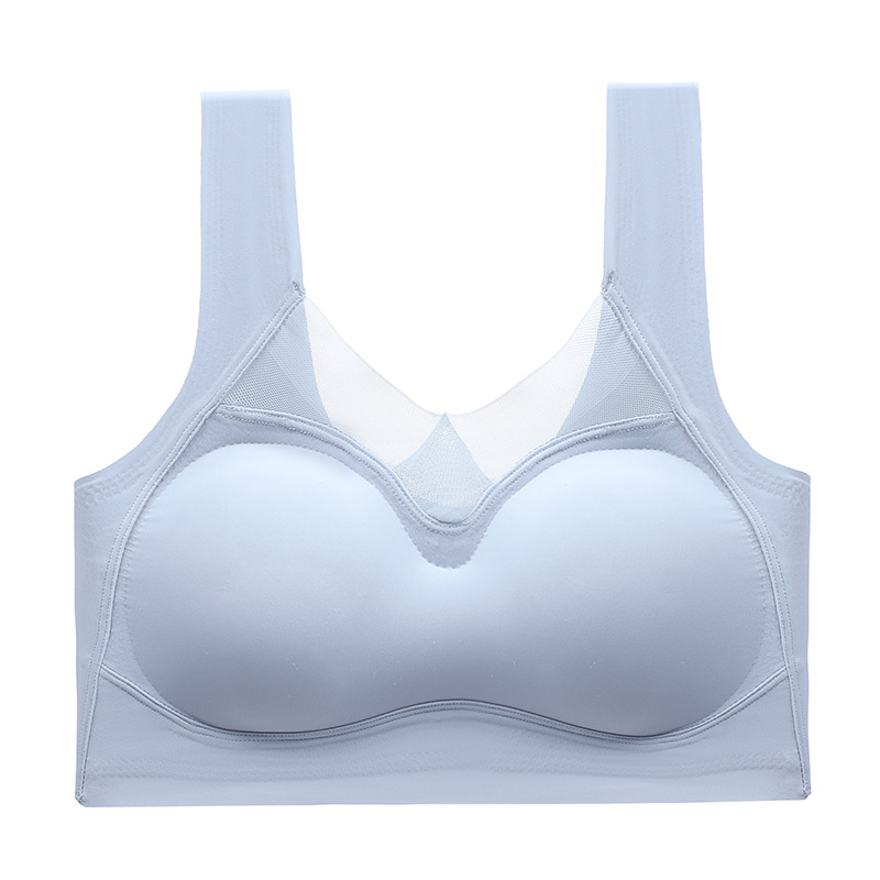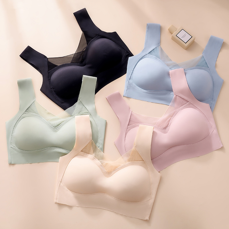 Non-marking Ice Silk Extra-text Bra Sexy Sports Underwear Women’s Thickened Chest Pad Small Chest Large Gather-up Thin Vest