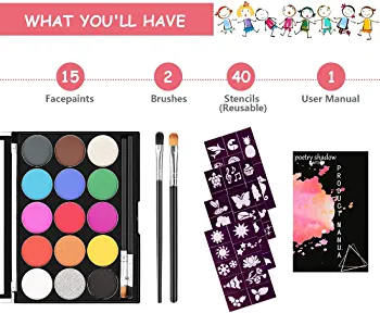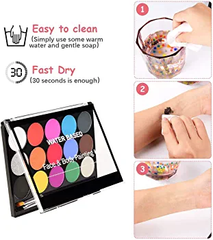 | nameOriginal | Face Paint Kit for Kids,Professional Non-tocix Face Paint 15 Colors Kit with 2 Brushes, Body Makeup Paint Hypoallergenic Water Based Paints for Party Cosplay |